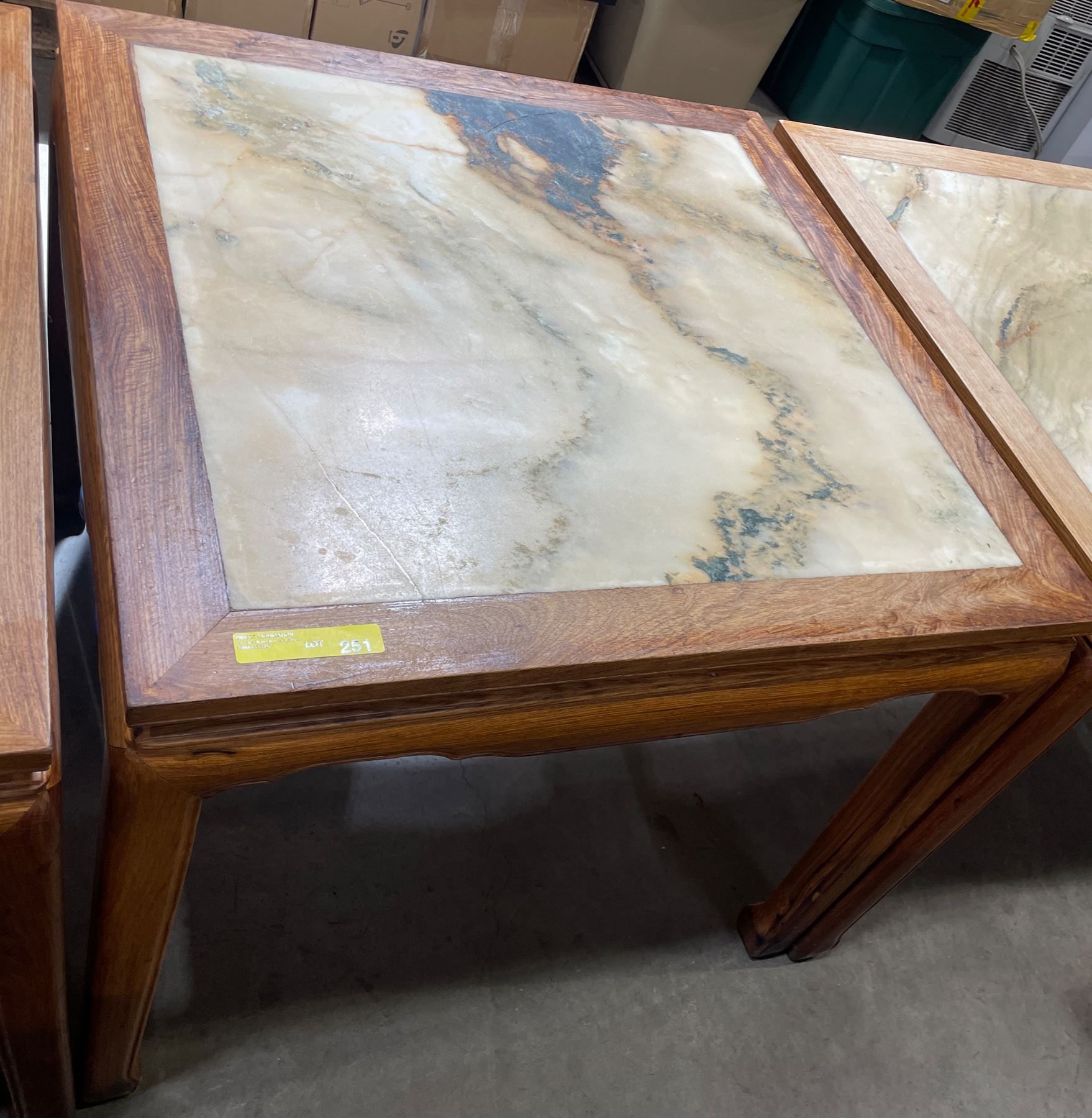 Asian Style Walnut Table w/ Marble inlayed top (3ft square x 31")