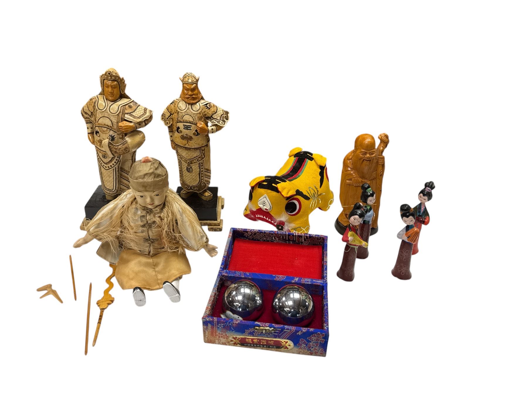 Assorted Asian Collectibles: Figurines, Baoding Balls, & More
