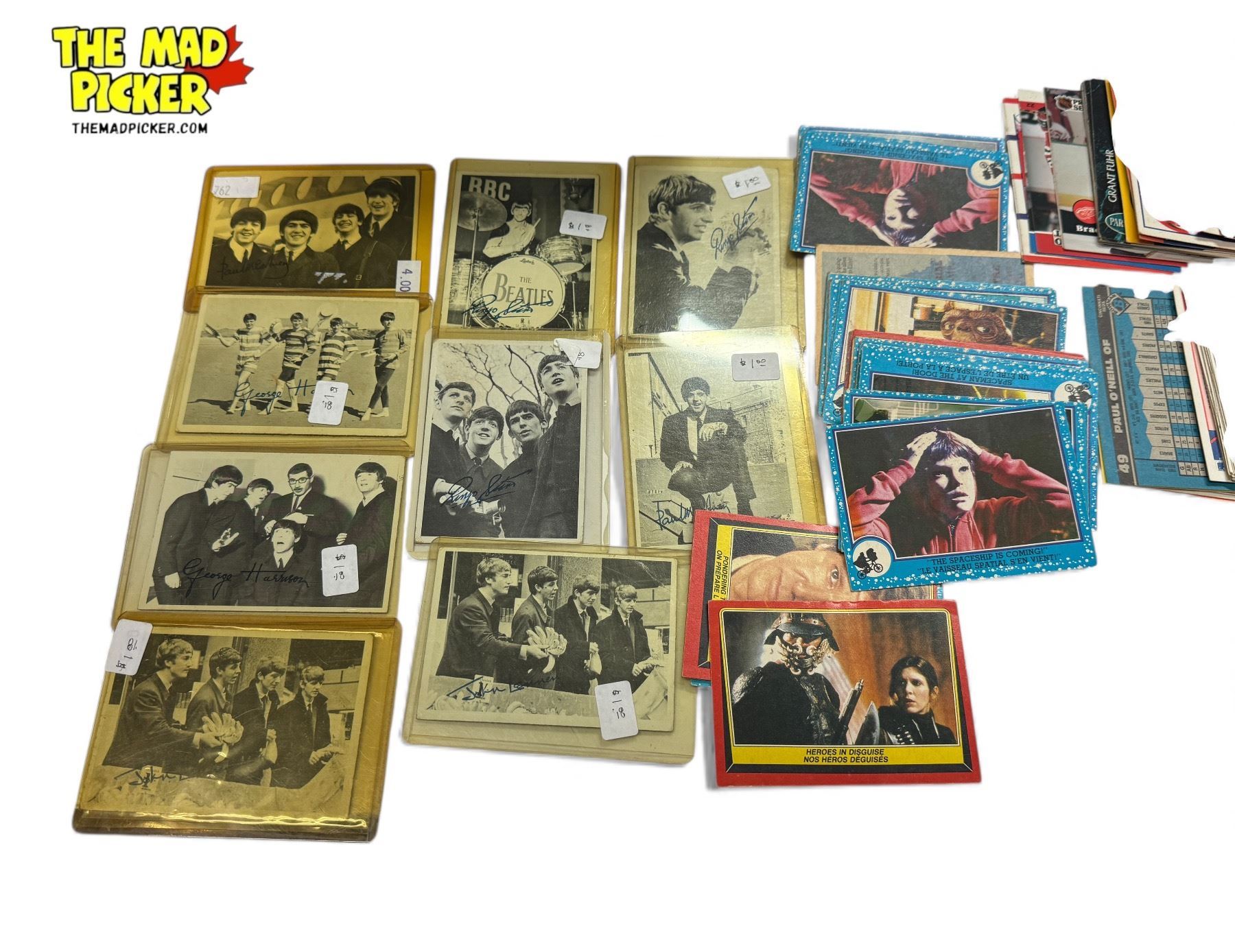 Assorted Collectible Cards: Sports (Hockey, Baseball), Beatles, Star Wars, & E.T.