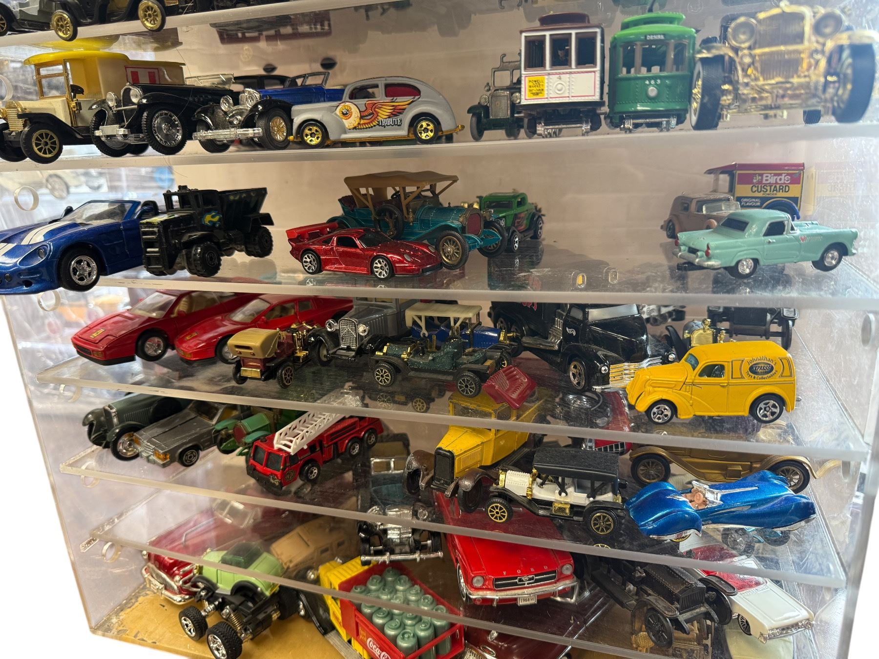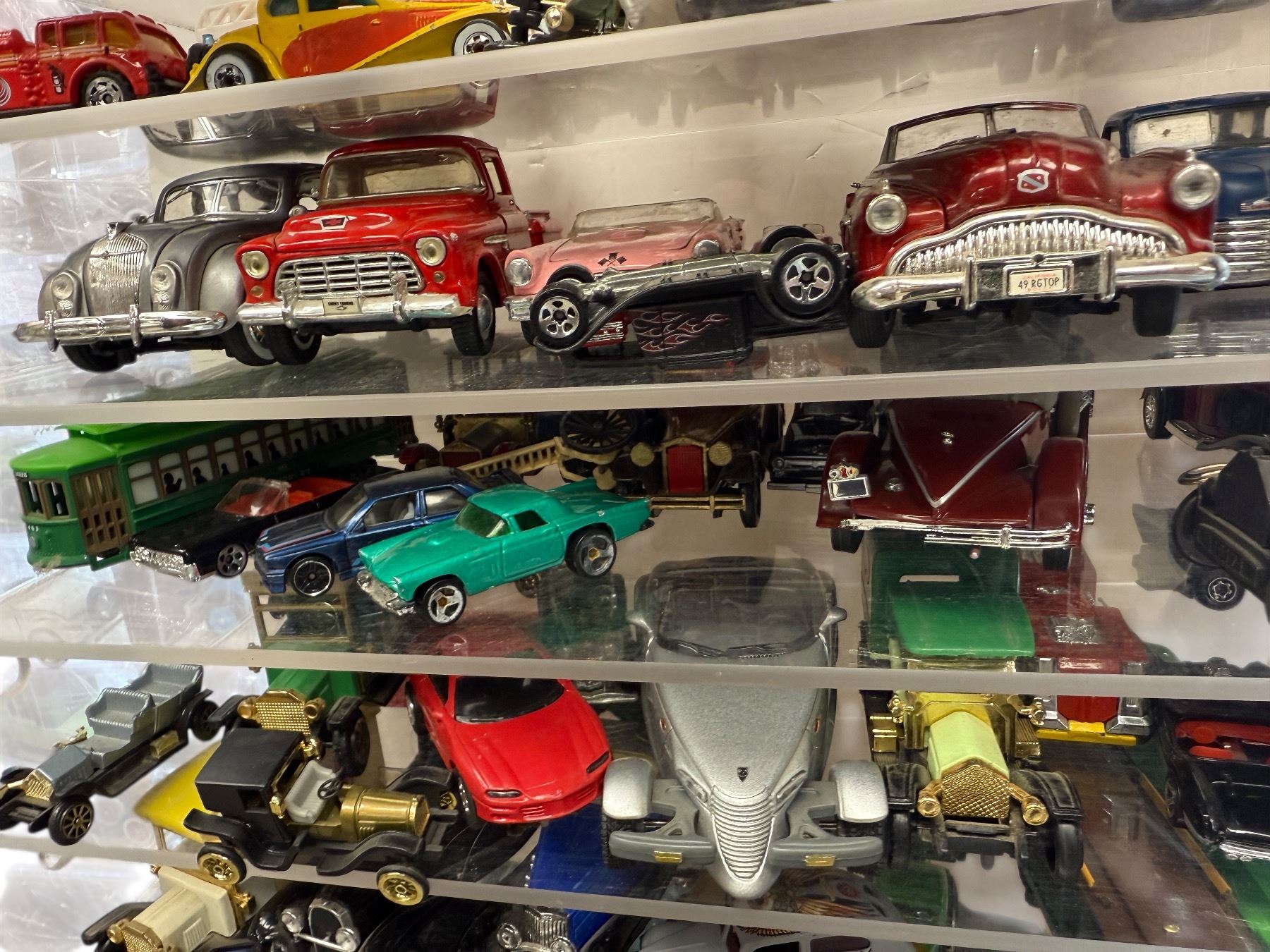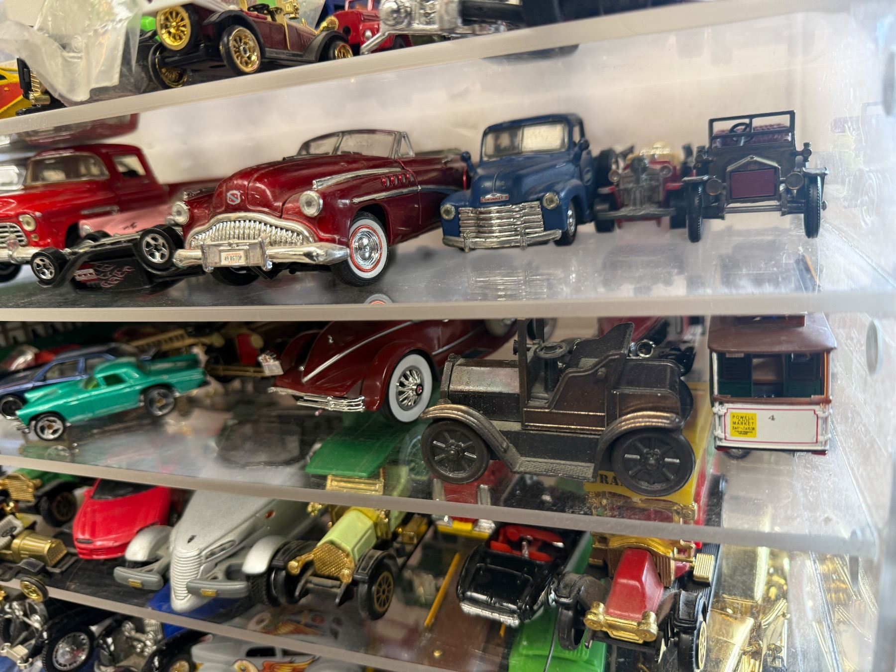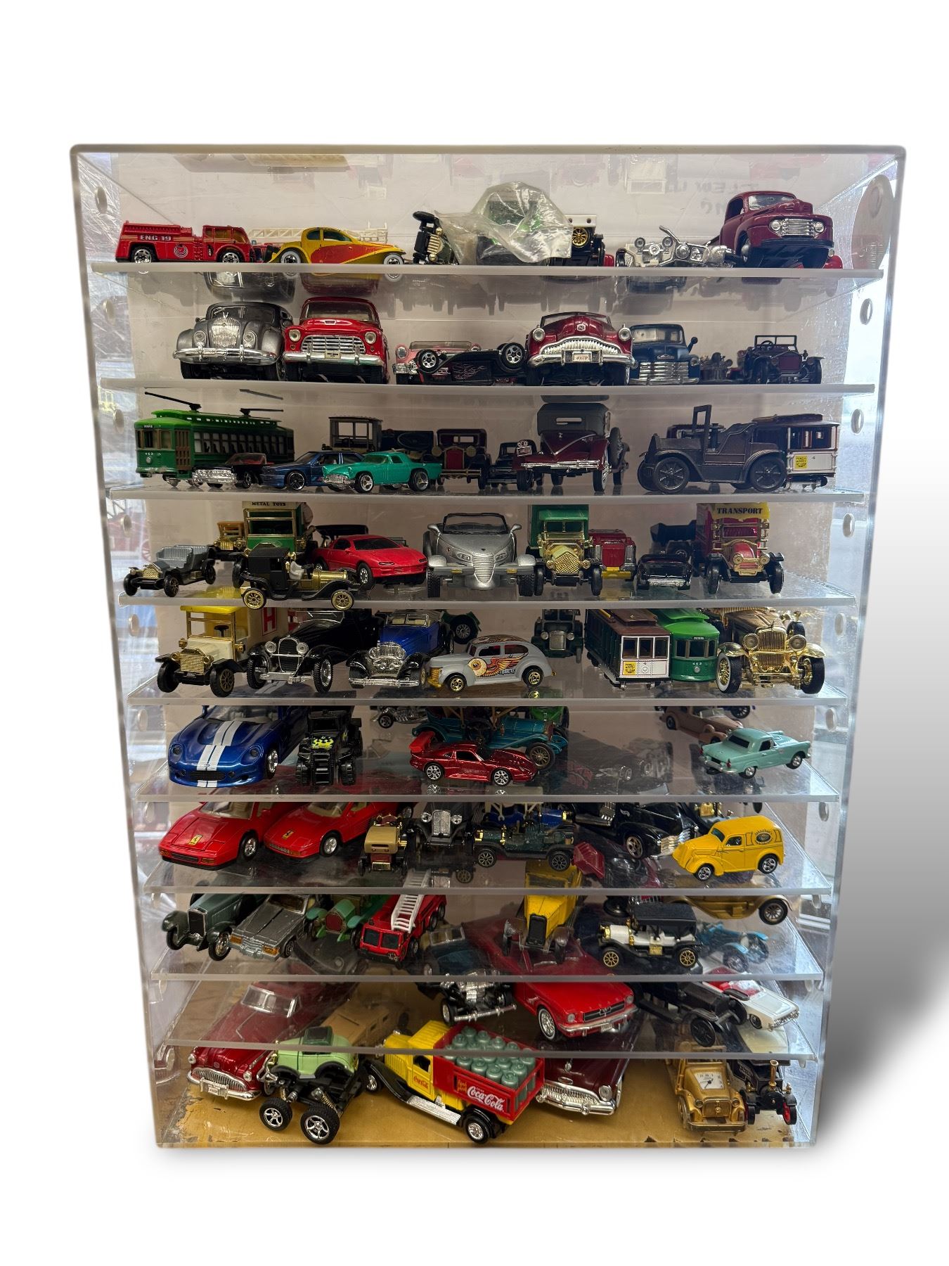 Assorted Collectible Toy Cars In Display Case