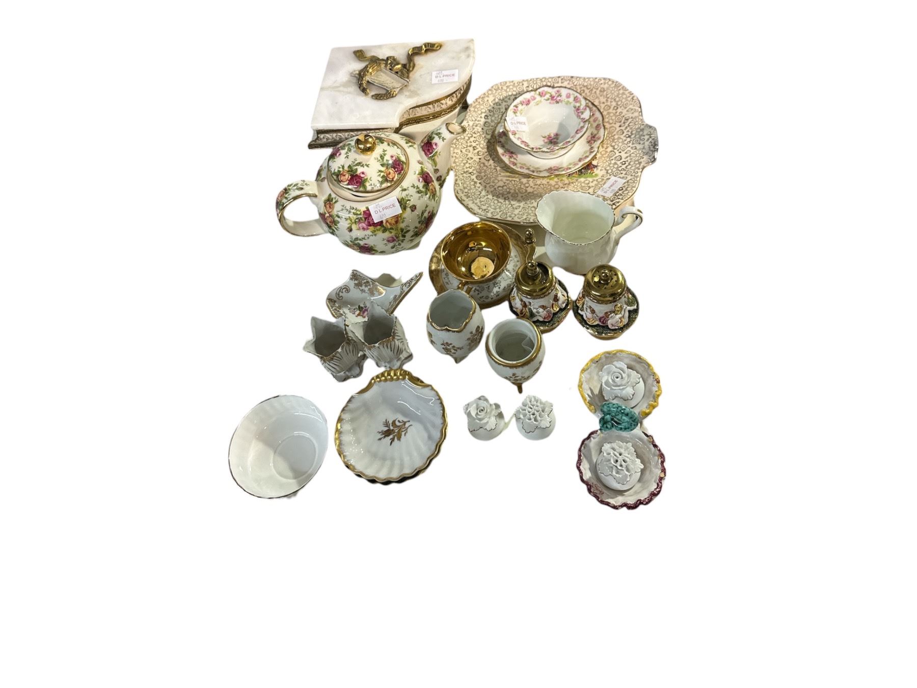 Assorted Decorative Porcelain, Teaware, Piano Music Box & Marble Jewelry Box Lot - Royal Albert, Paragon, Etc.