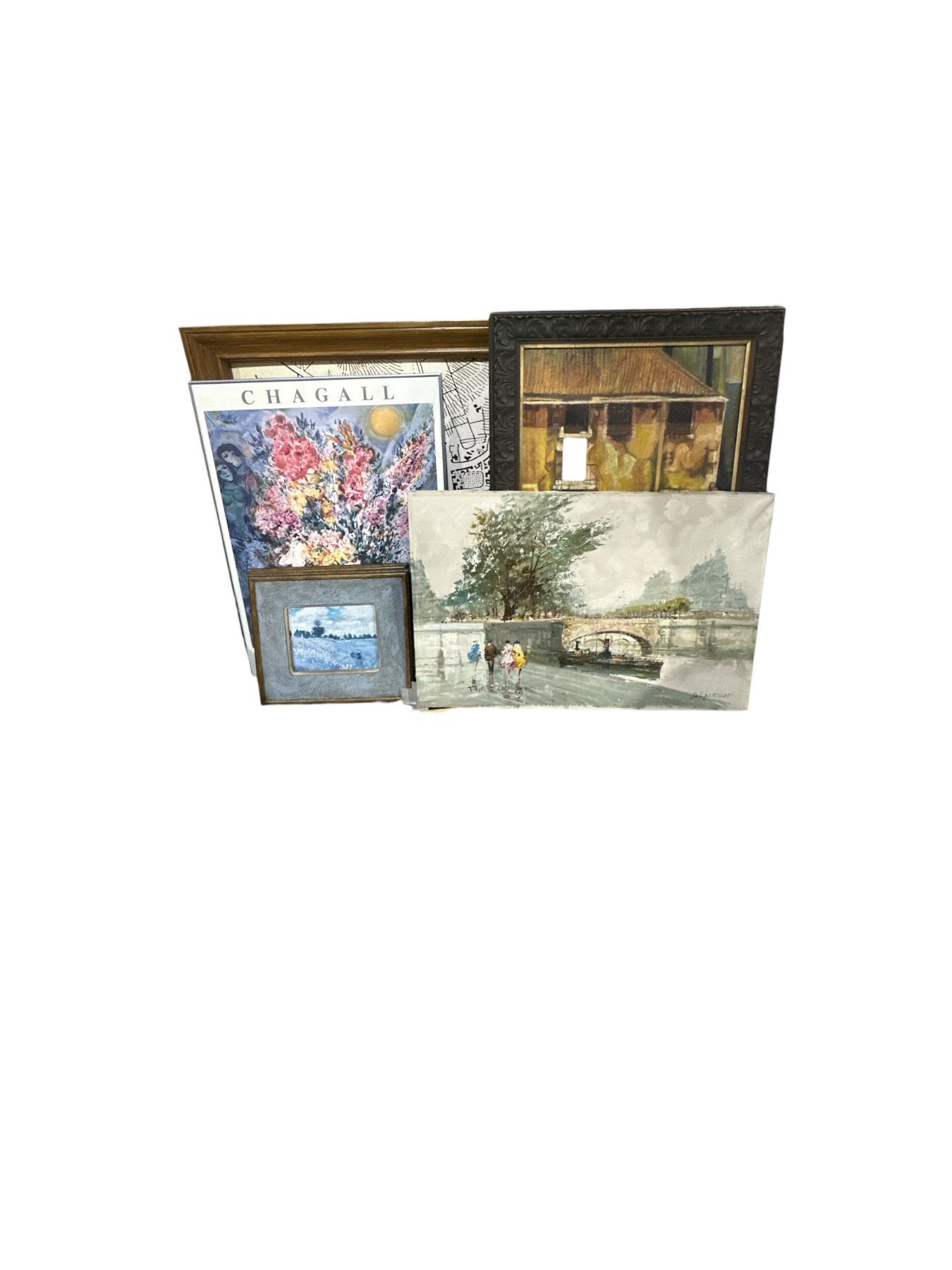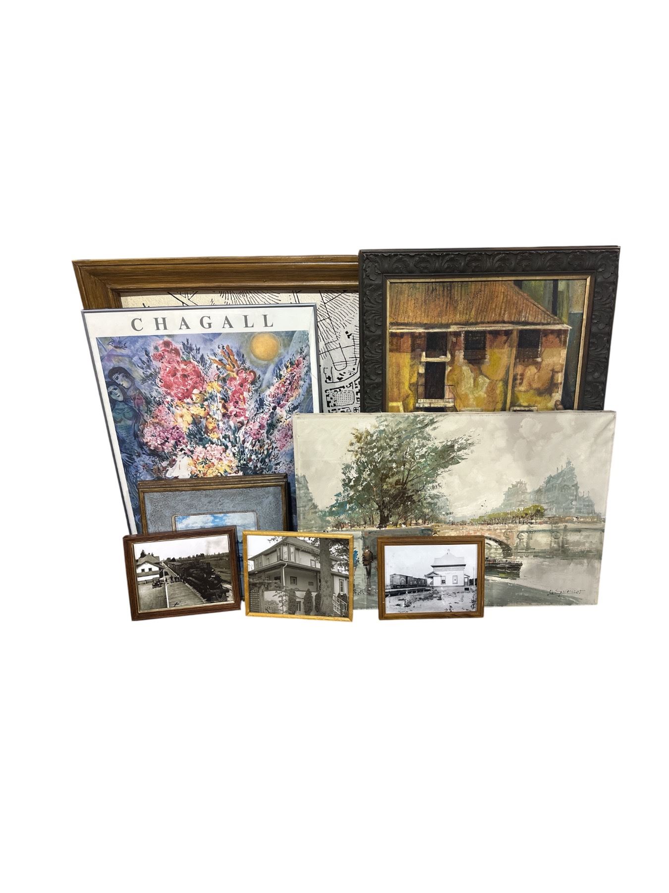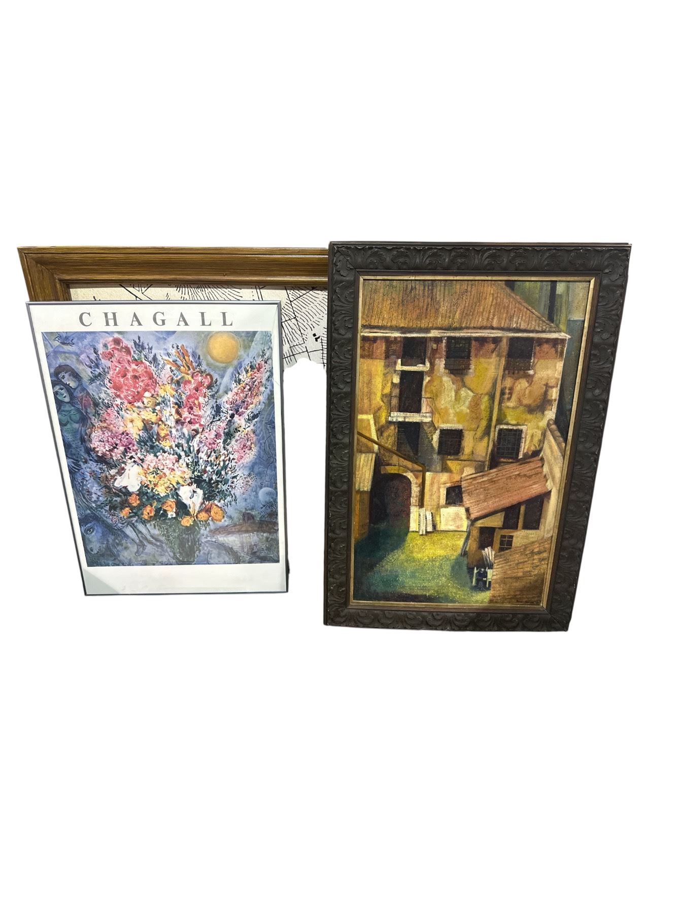 Assorted Framed Artwork & Prints Including Landscape Painting and Chagall Poster