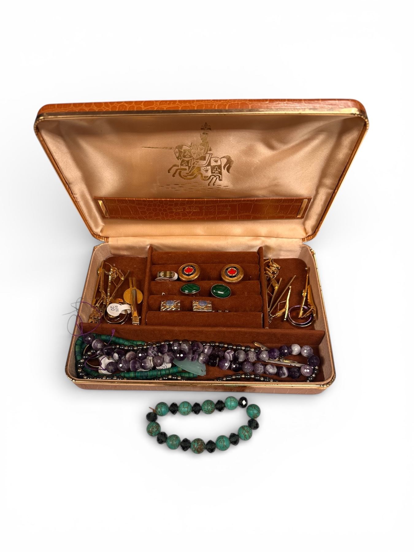 Assorted Lot of Beaded Necklaces, Cuff Links, Jacket Clips