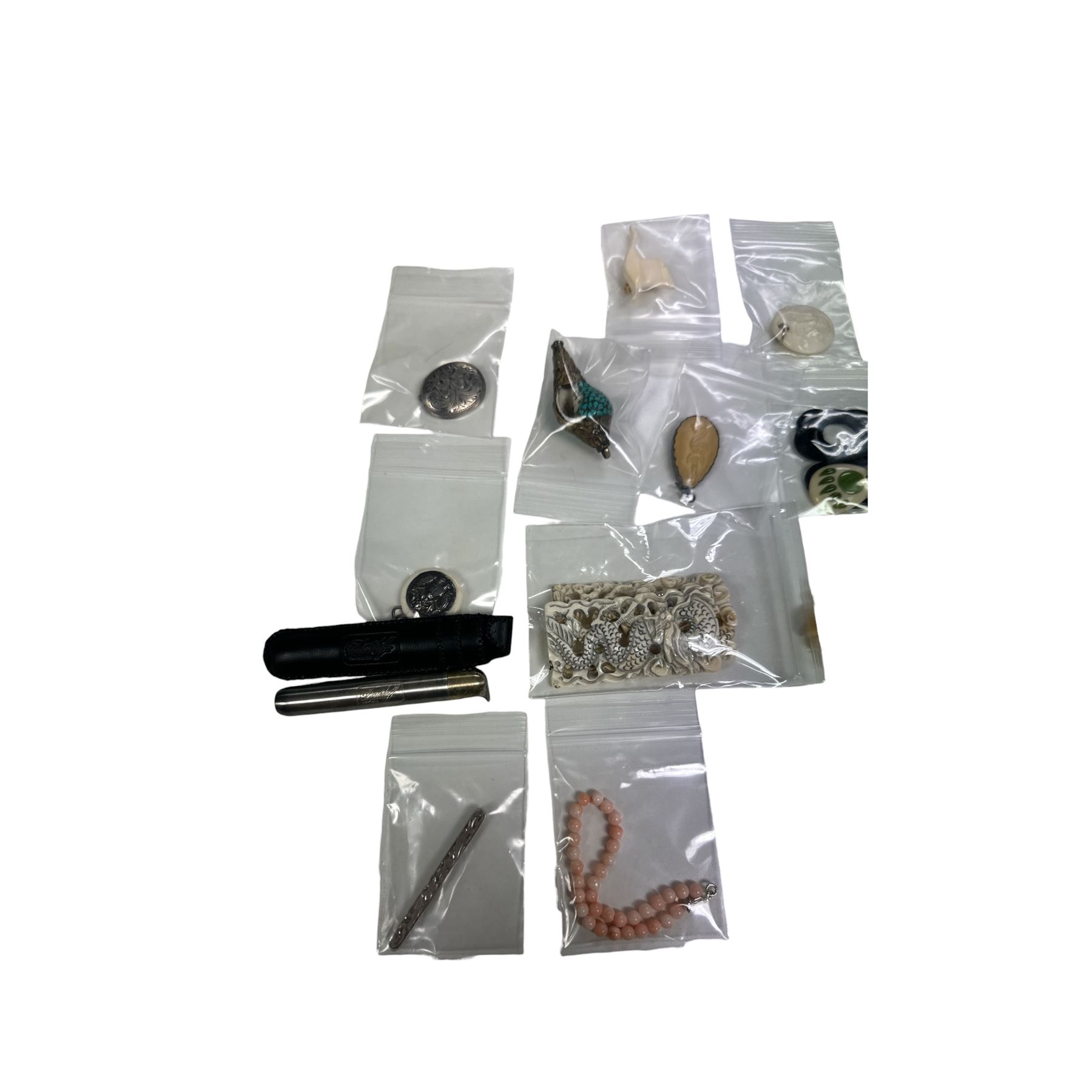 Assorted Lot of Jewelry ( Davidoff Lighter, Necklaces, Pendants, Bracelet)
