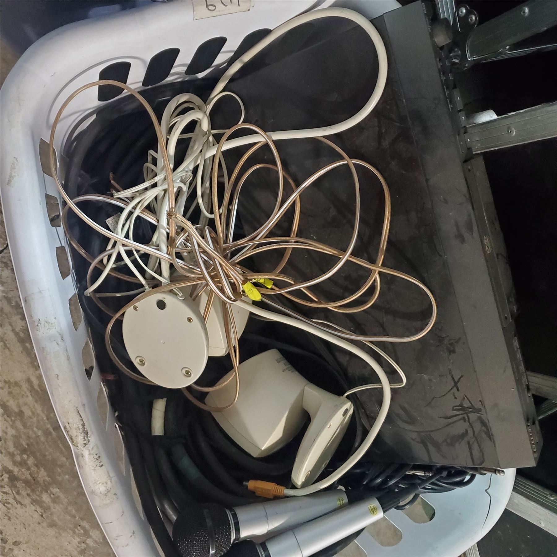 Assorted Microphone Cables and Wiring, Panasonic DVD Player, 2 Microphones and Speakers