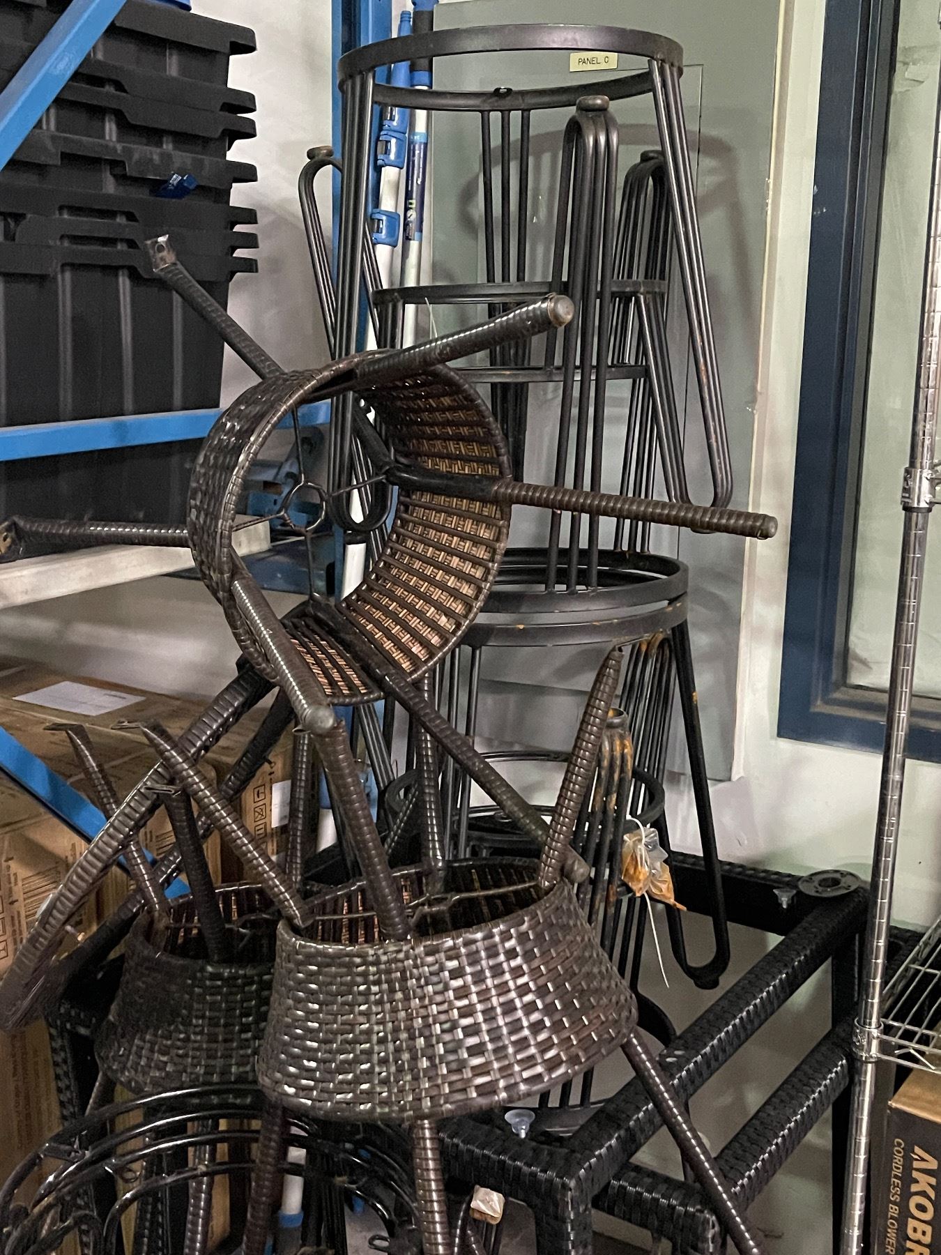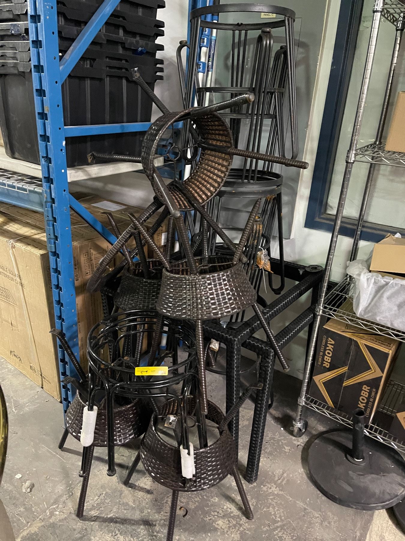 Assorted Outdoor Wicker & Metal Planter Stands and Table Bases