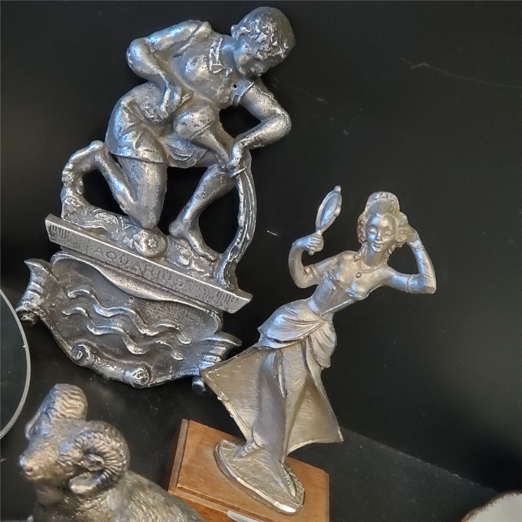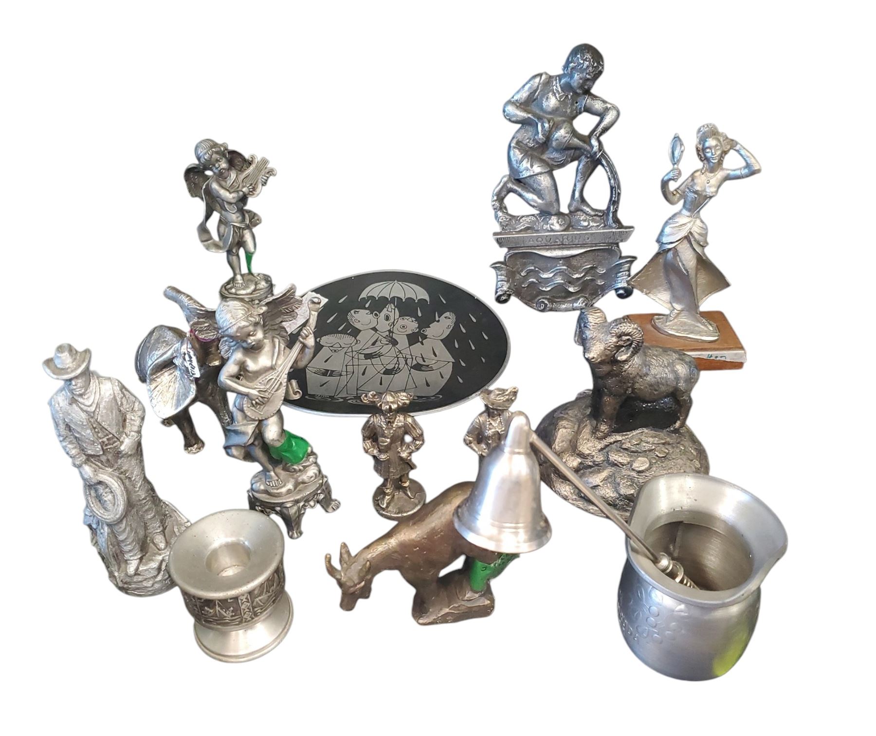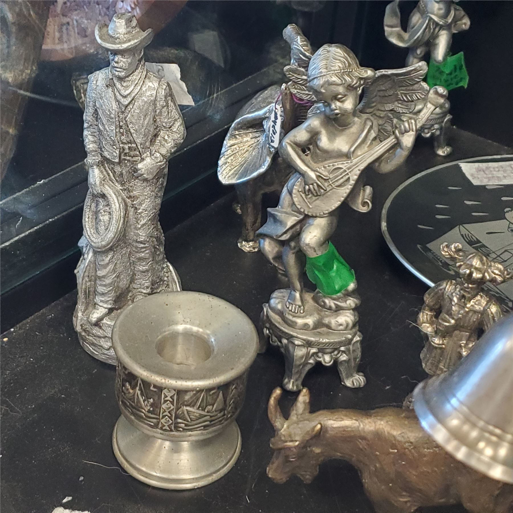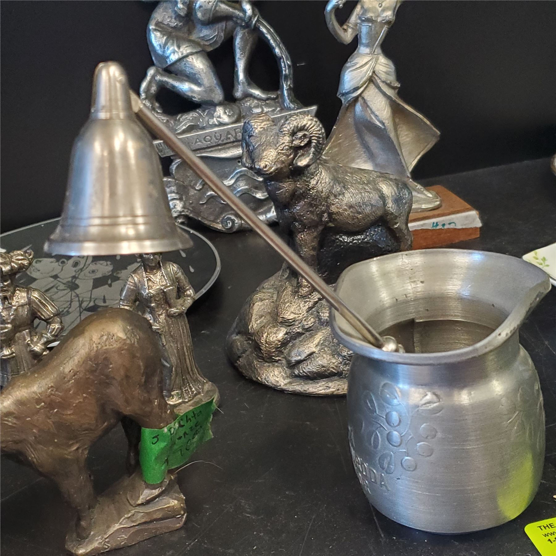 Collection of assorted pewter items including various shapes and designs. The tallest item in the group measures 7-Inch tall. Items are as pictured and may show signs of age or wear typical of pewter objects.