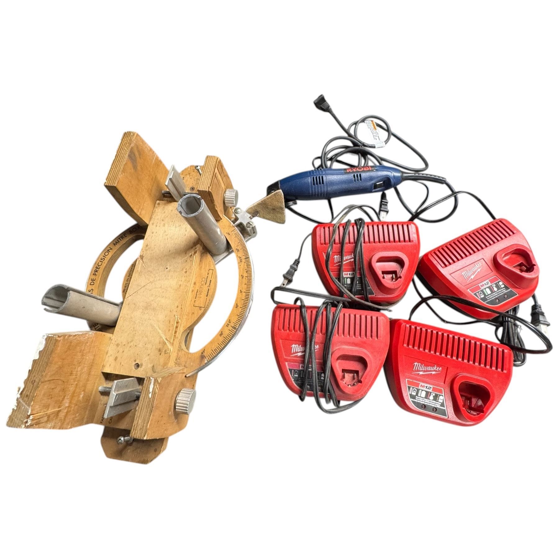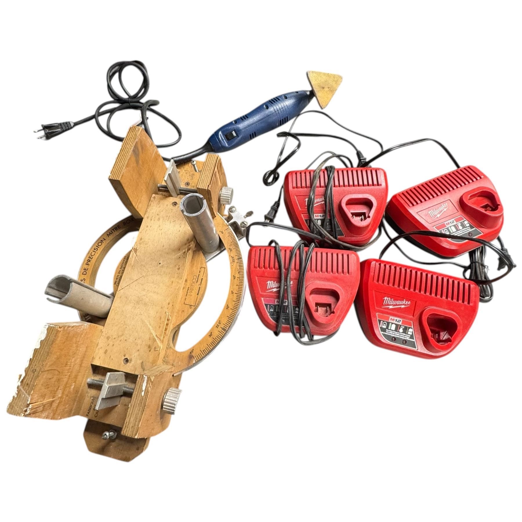 Assorted Tools and Milwaukee Chargers