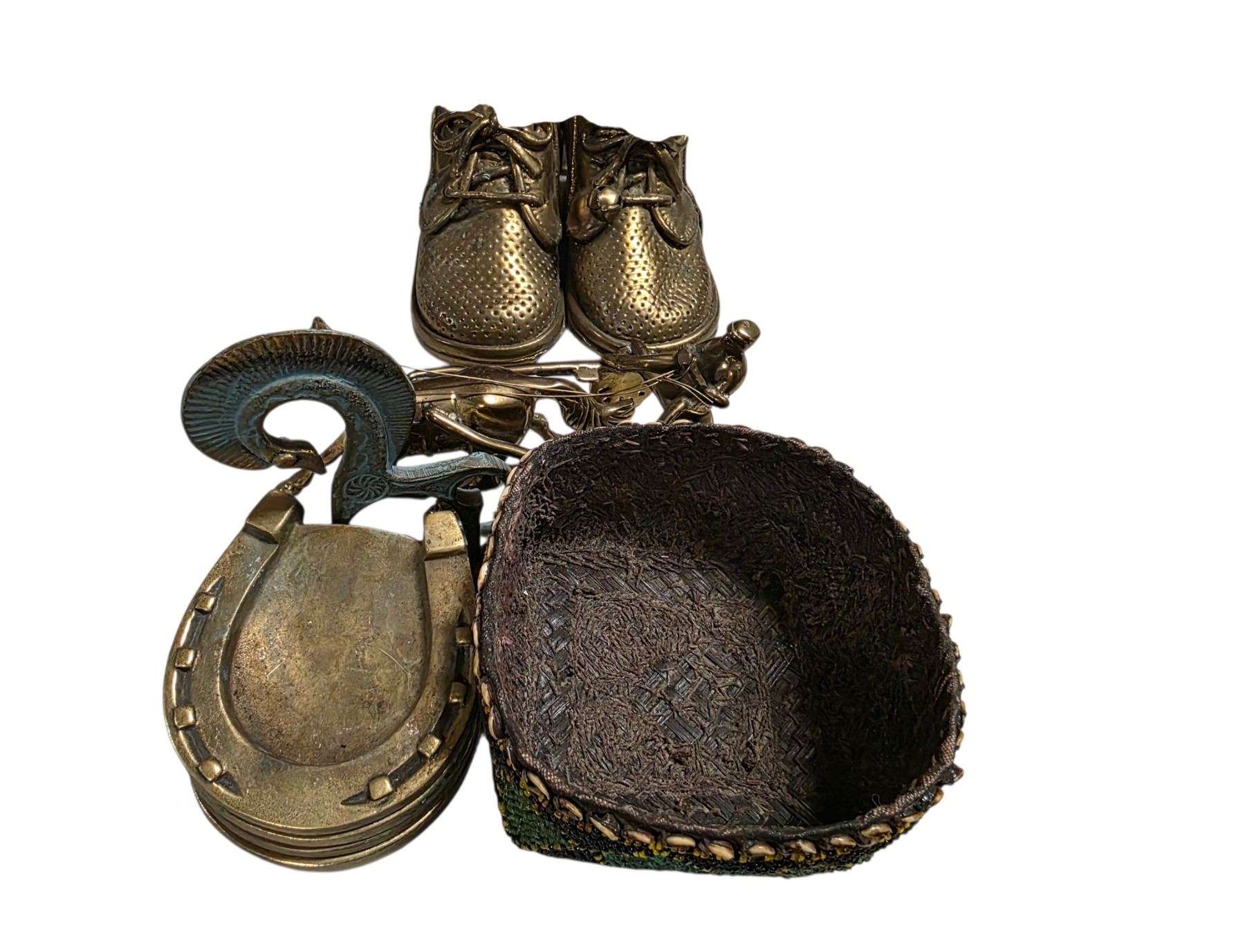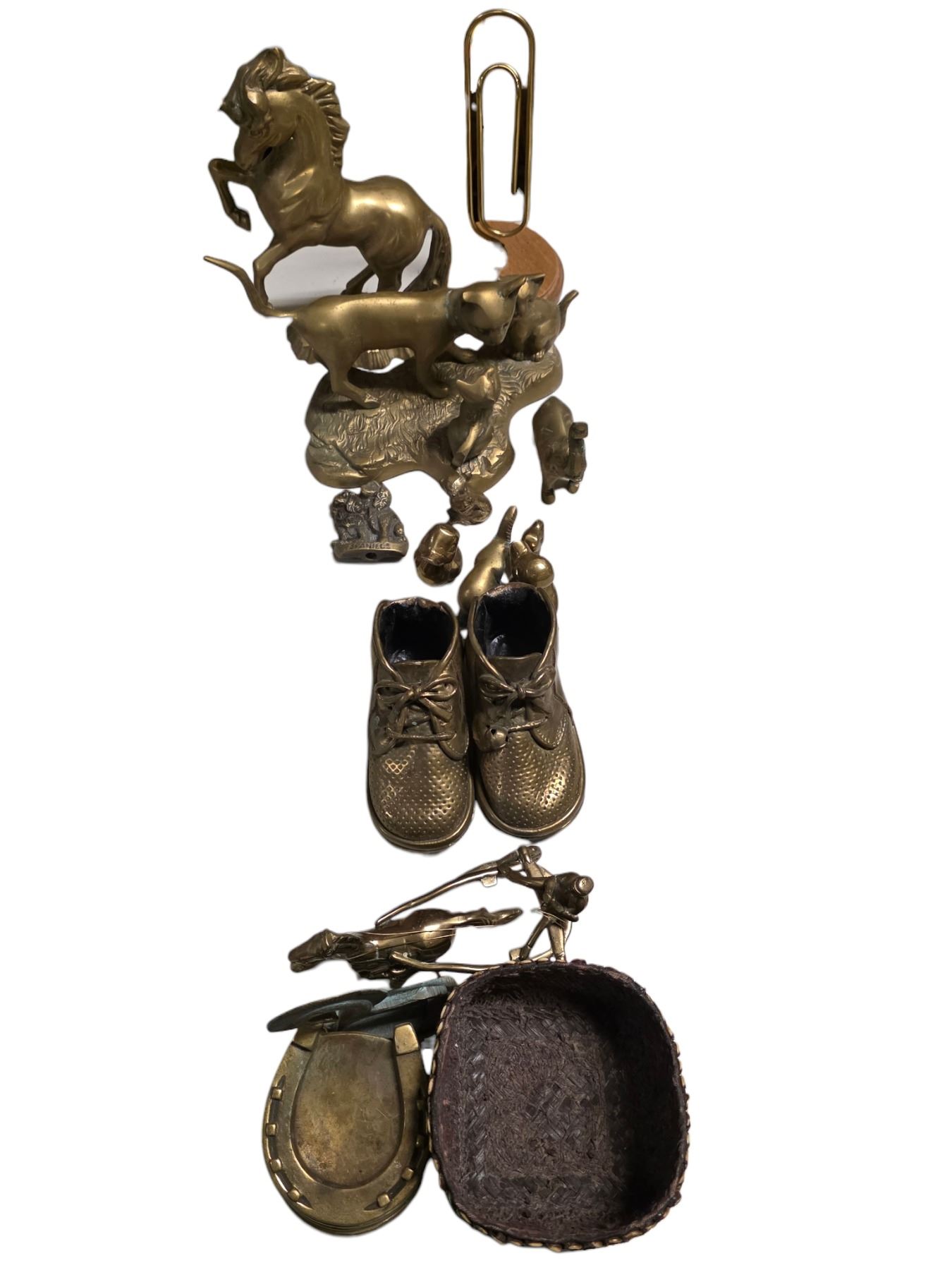 Assorted Vintage Brass Animal Figurines & Novelty Items incl Horse, Cats, Baby Shoes & More