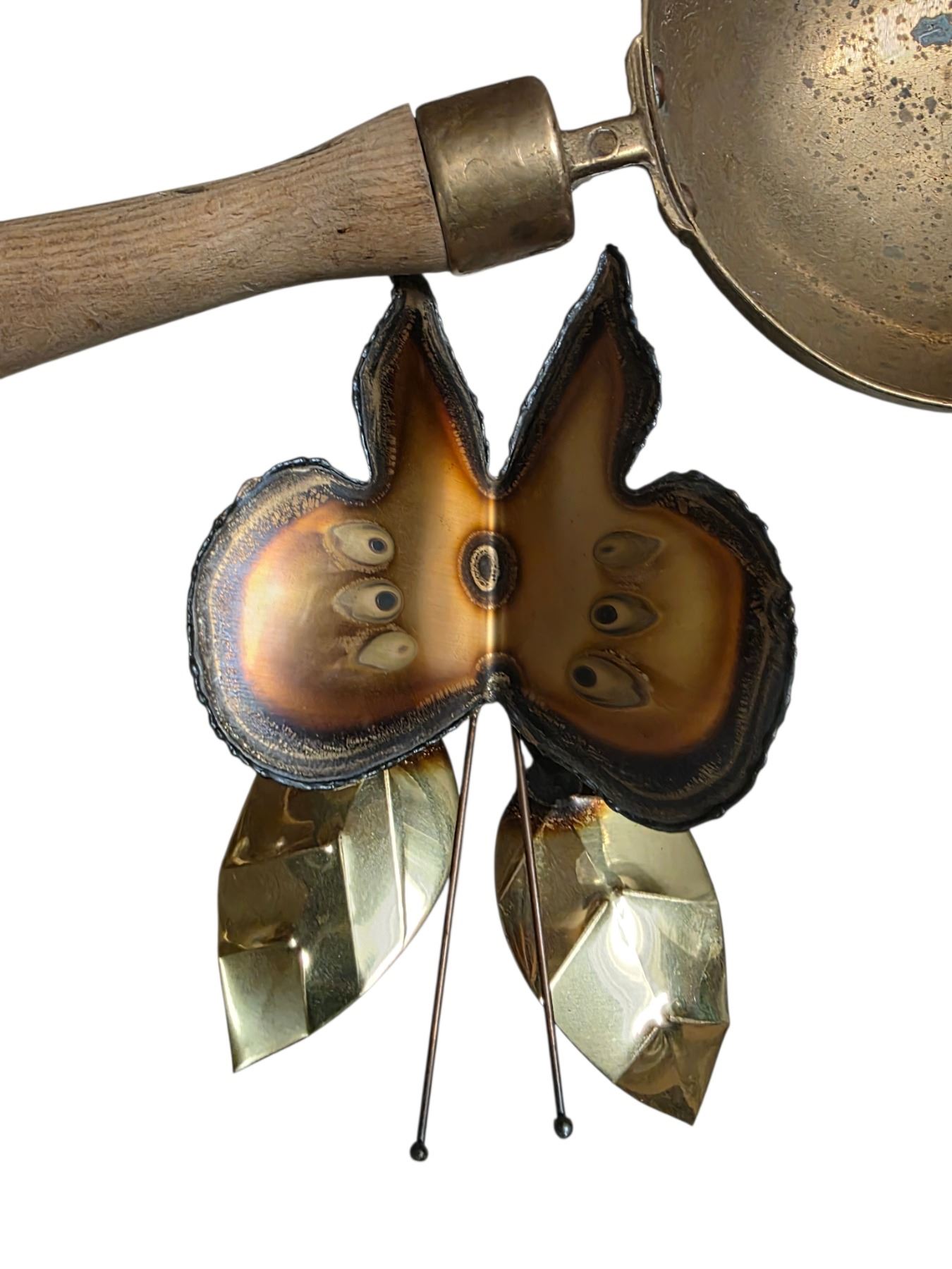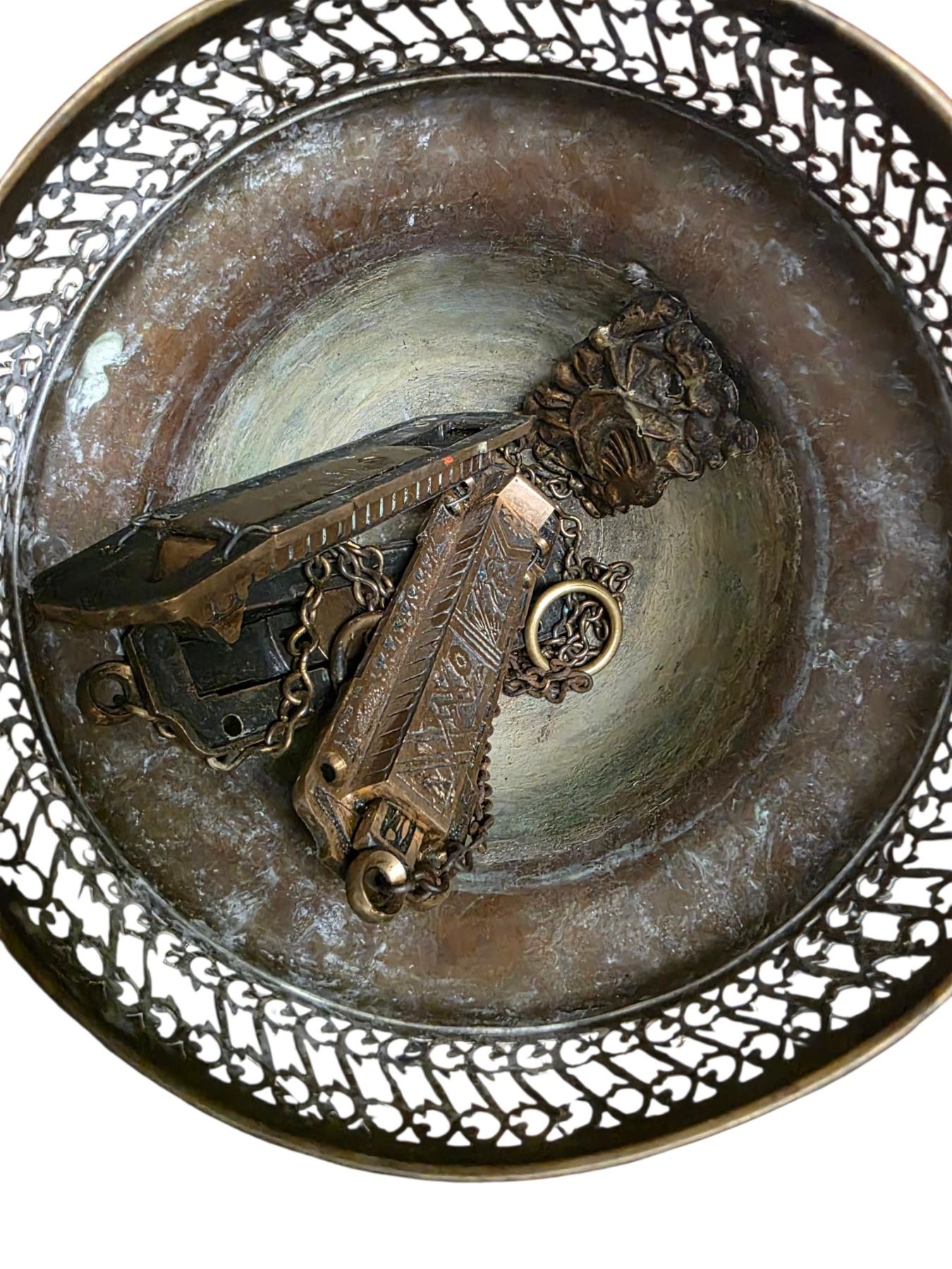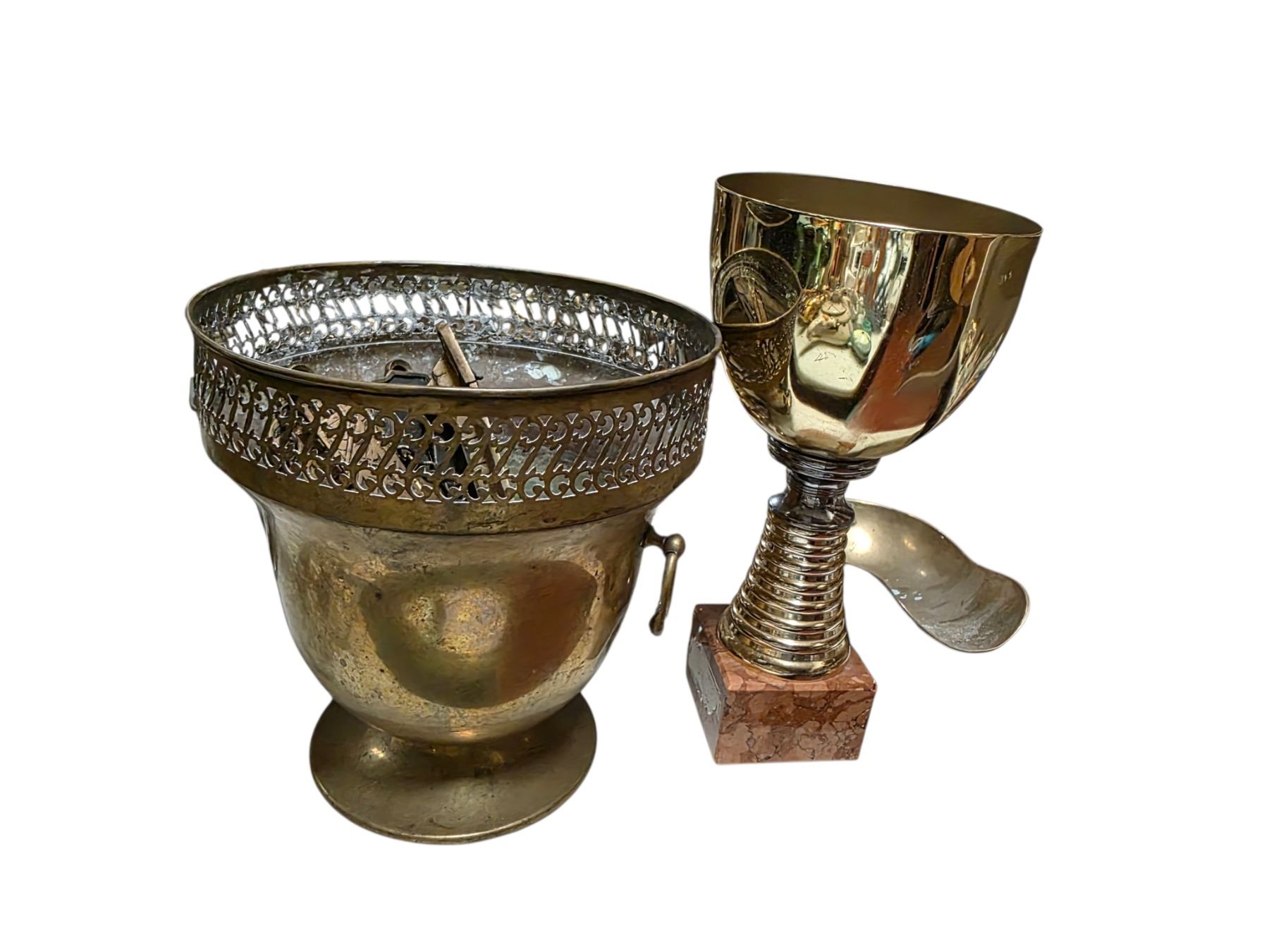 Assorted Vintage Brass & Metal Decor Lot - Footed Pierced Bowl, Goblet, Mini Figurines, Butterfly Wall Art & Misc