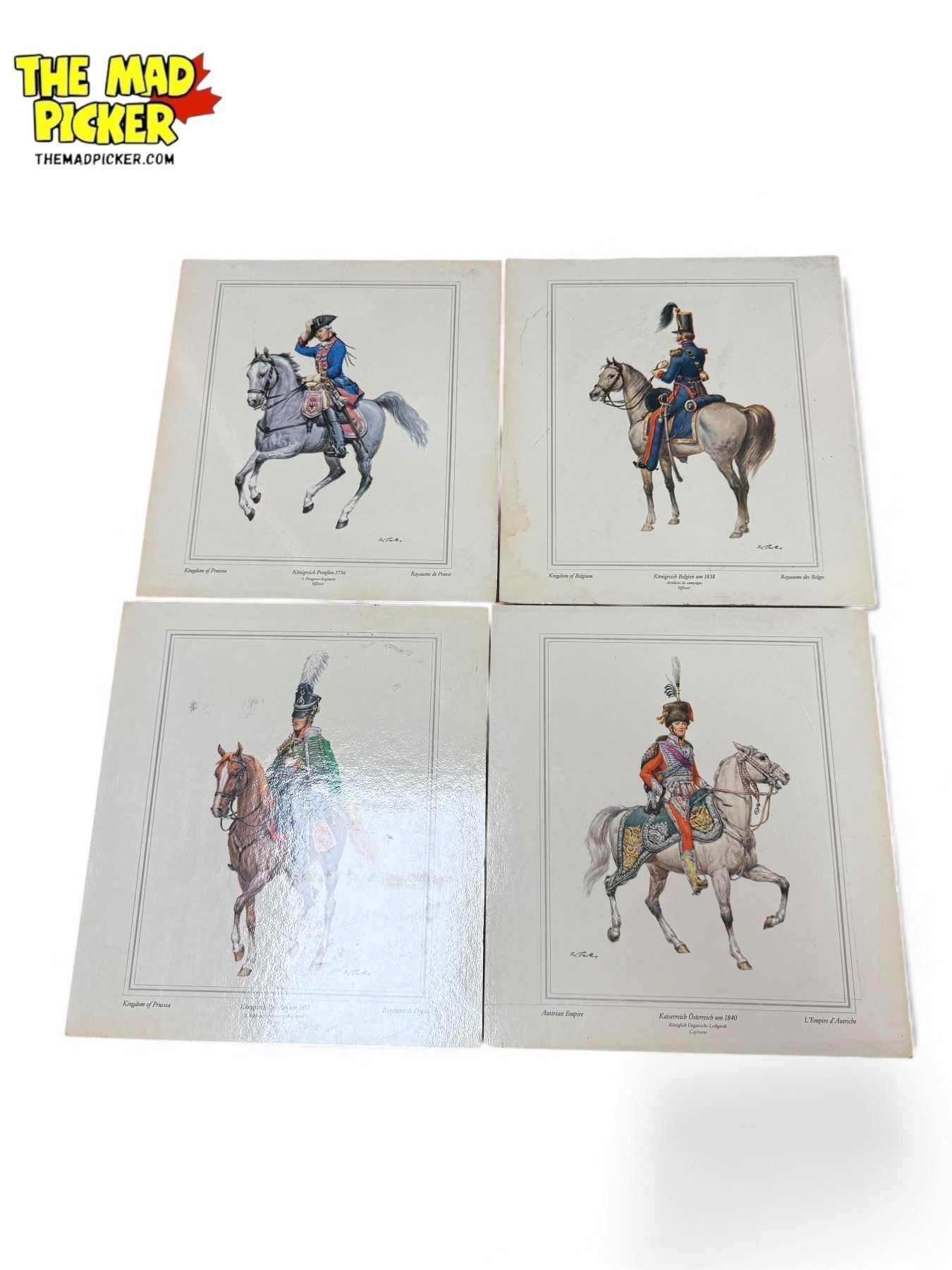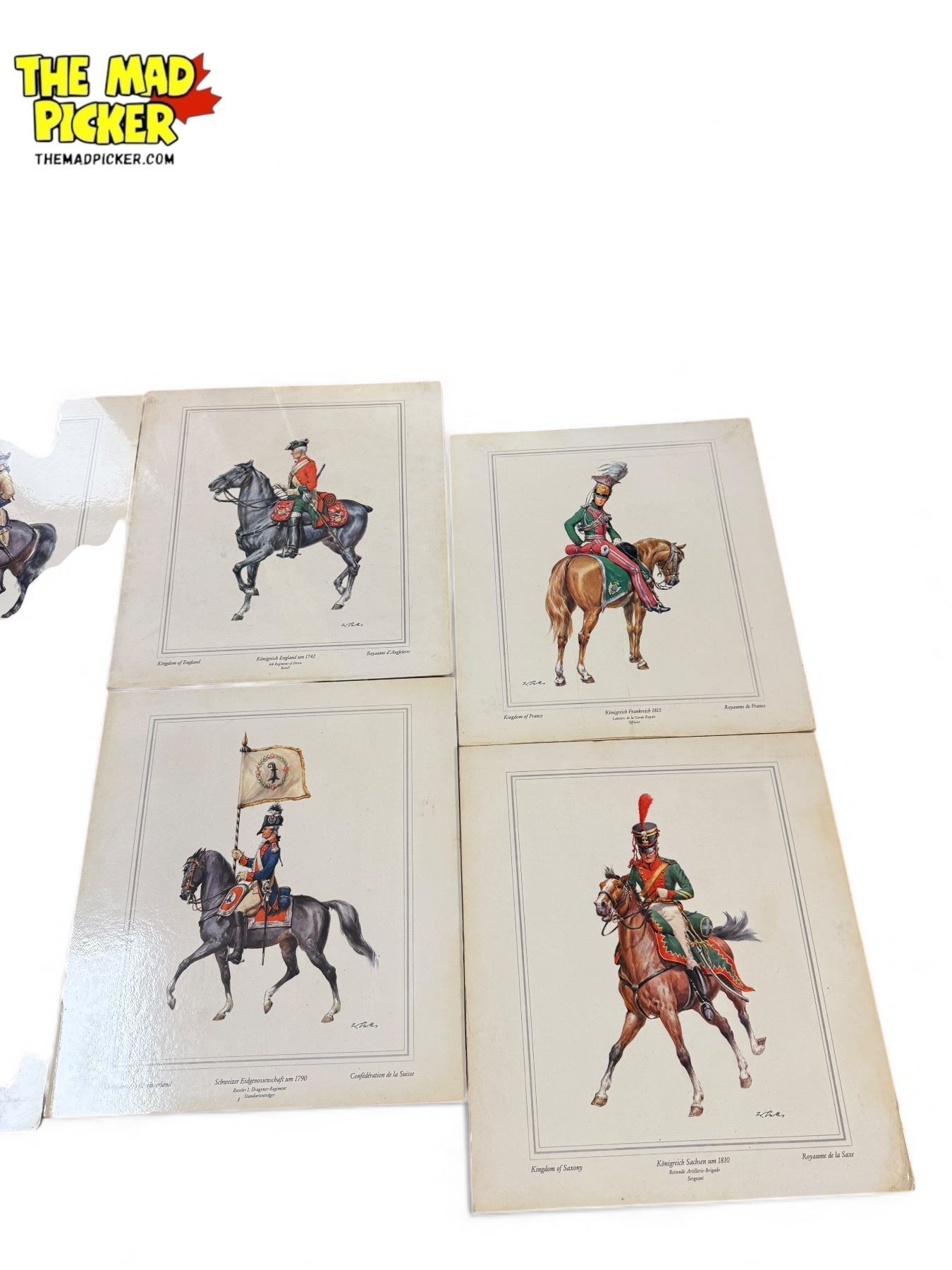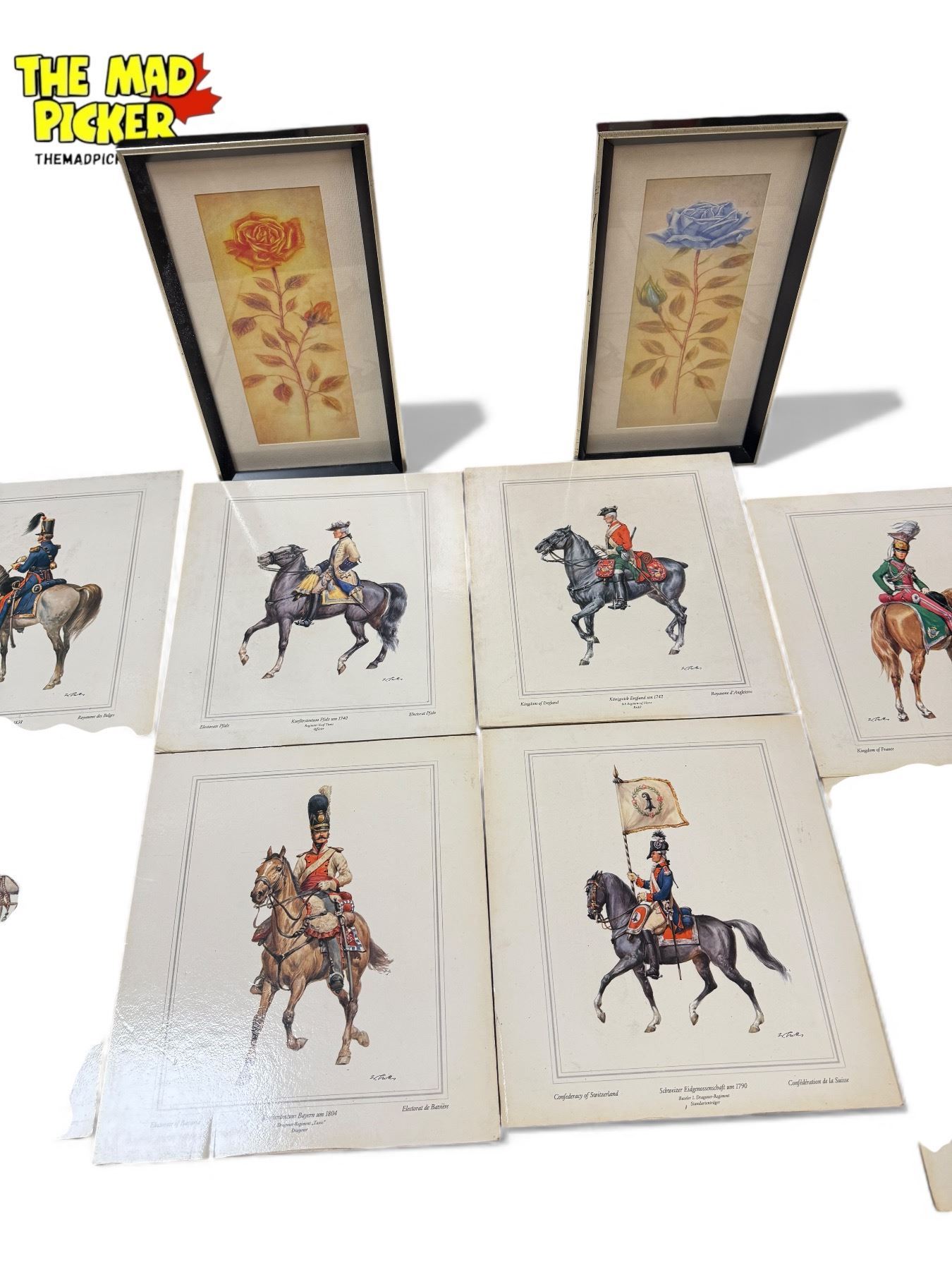 Assorted Vintage British Military Prints, Floral Prints, & Checkerboard