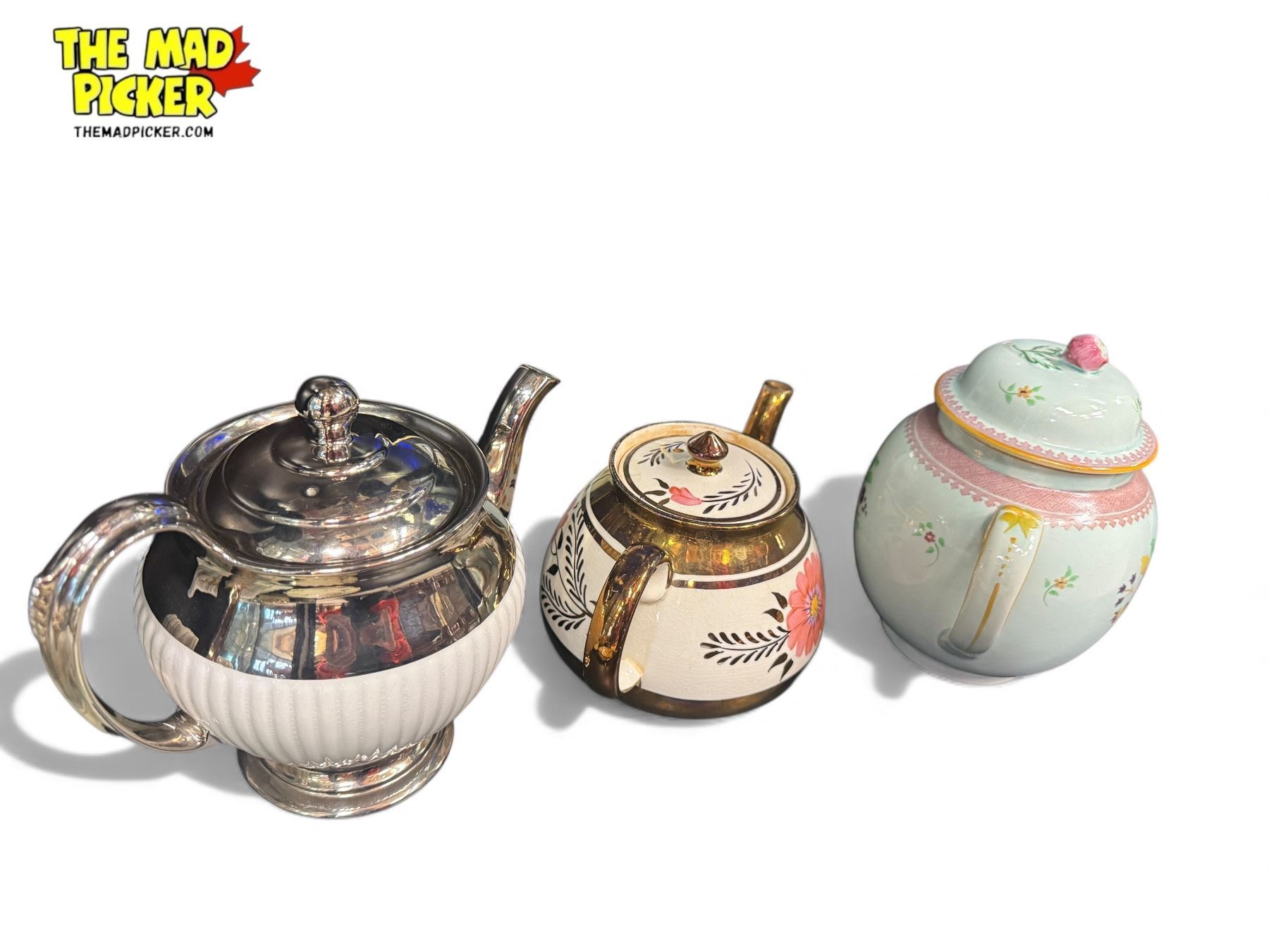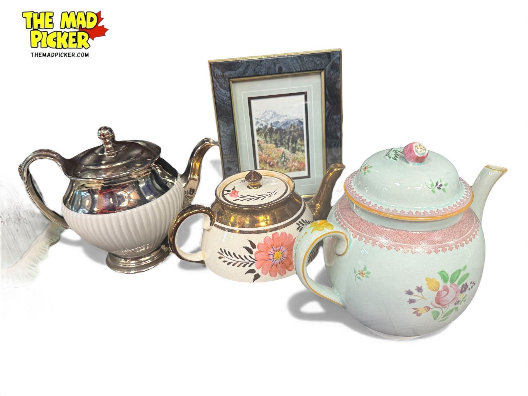Assorted Vintage Collectibles: Teapots, Plates, Sugar Bowl, Cheese Dish, & More