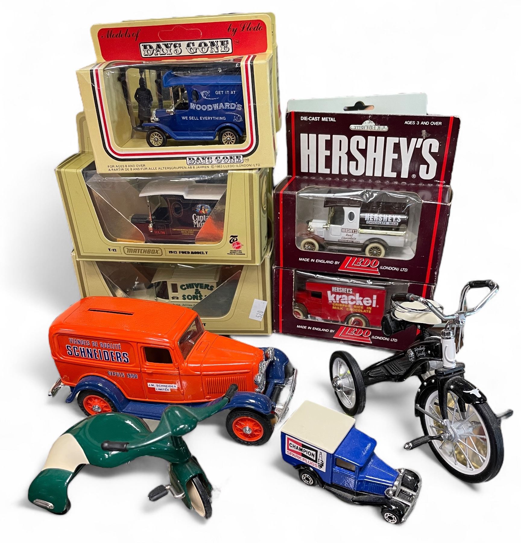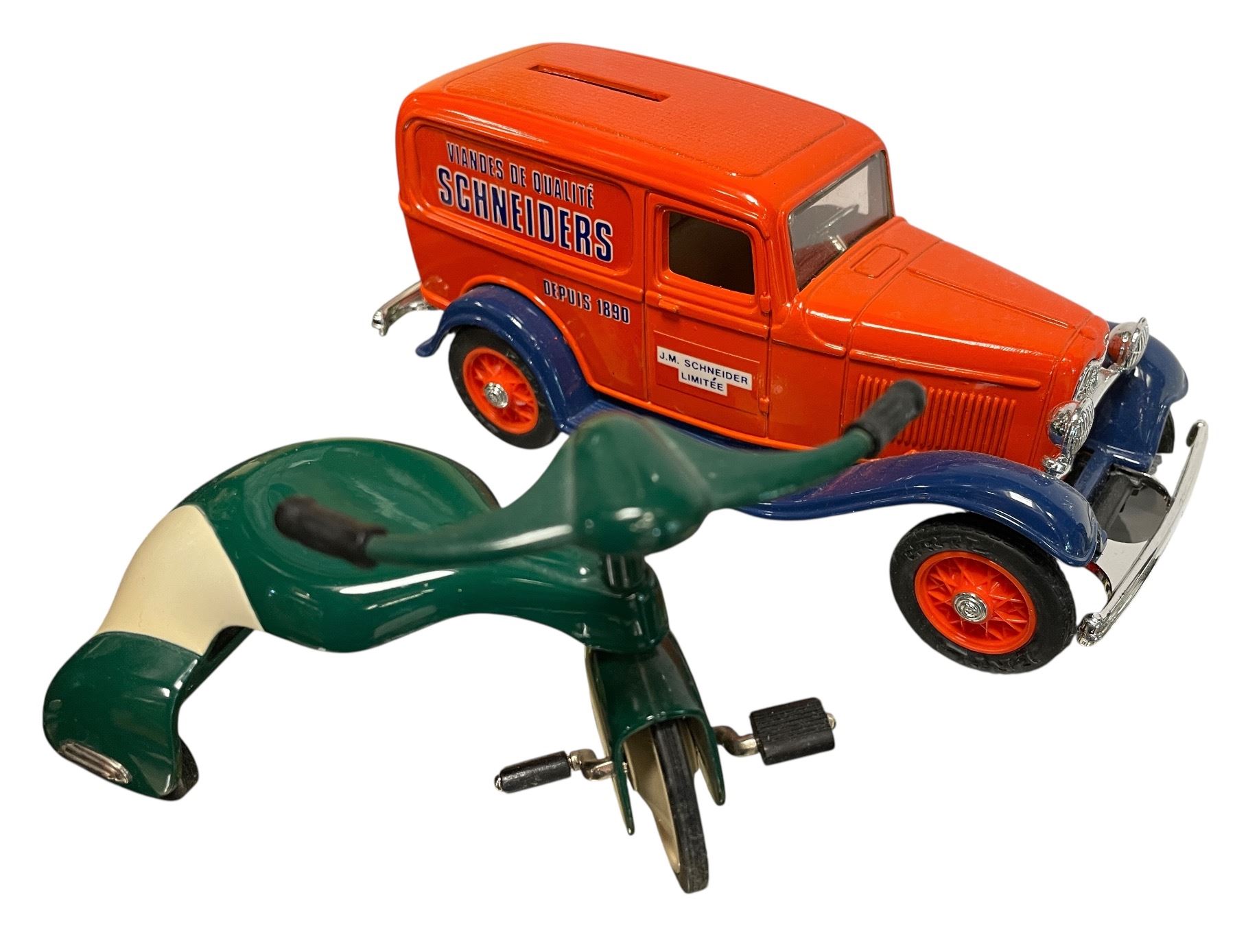 Assorted Vintage Die Cast Cars & Tricycles