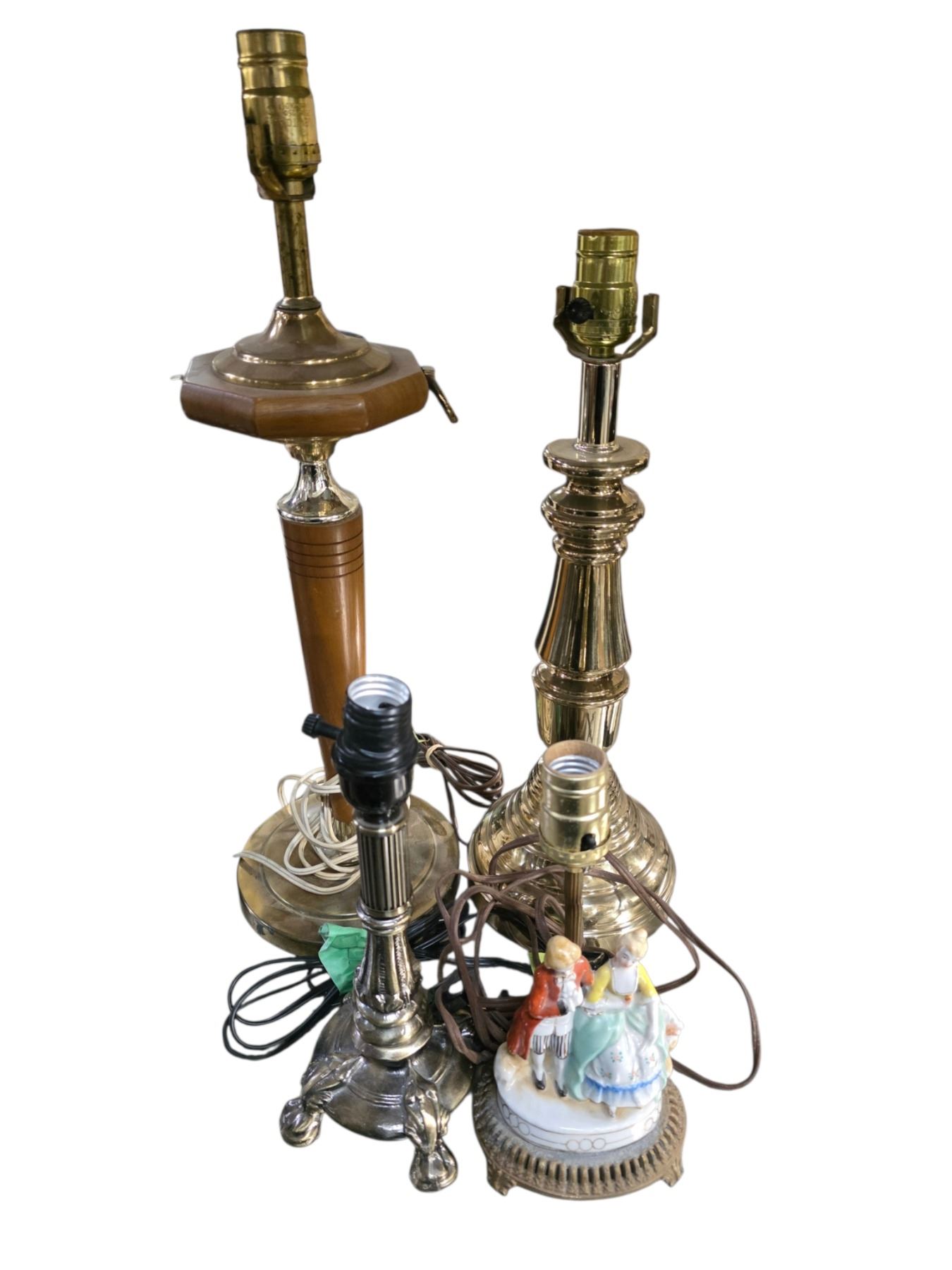 Assorted Vintage Table Lamps & Figurine Lamp Base Set