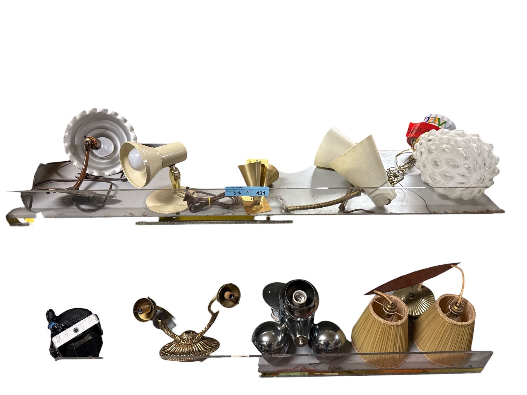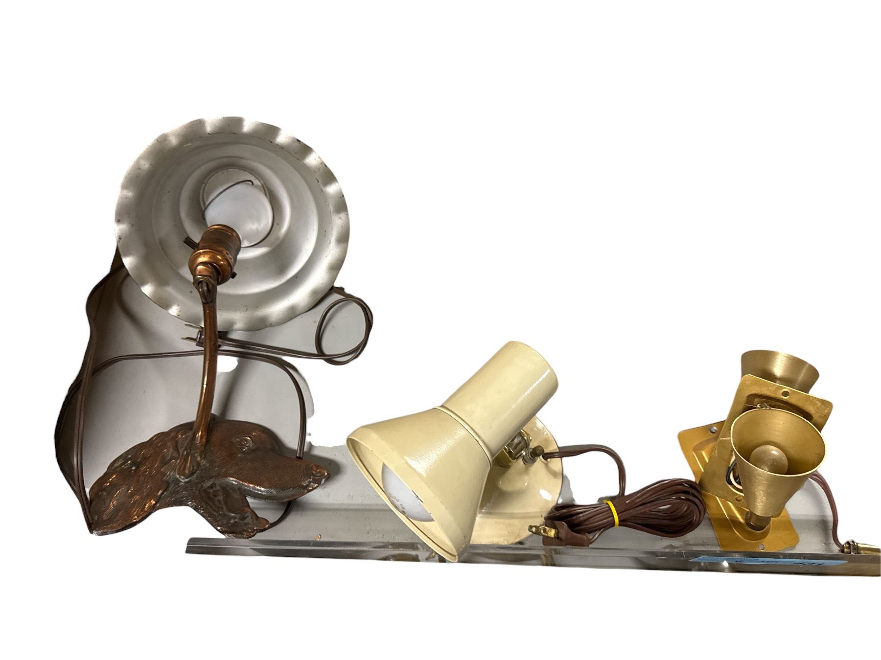 Assorted Vintage Wall and Ceiling Light Fixtures Including Mid-Century Spotlights, Sconce Bases, and Glass Globe Shade Lot