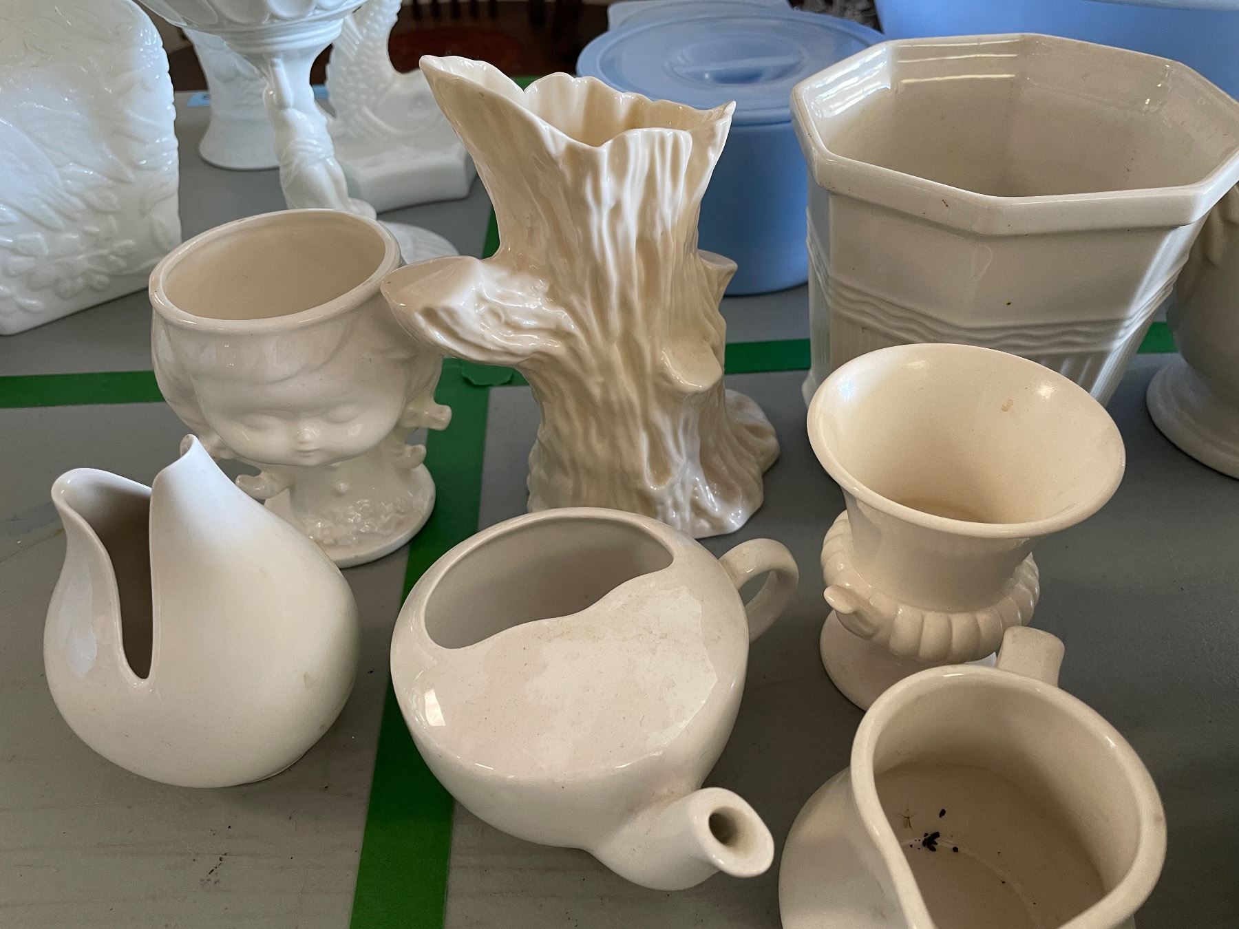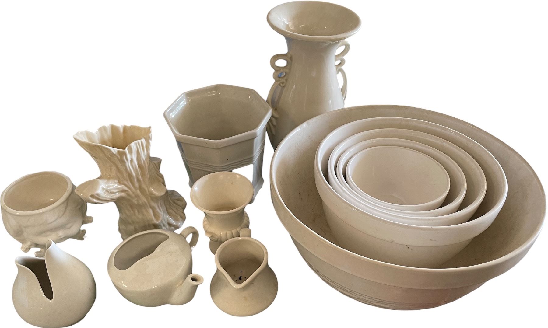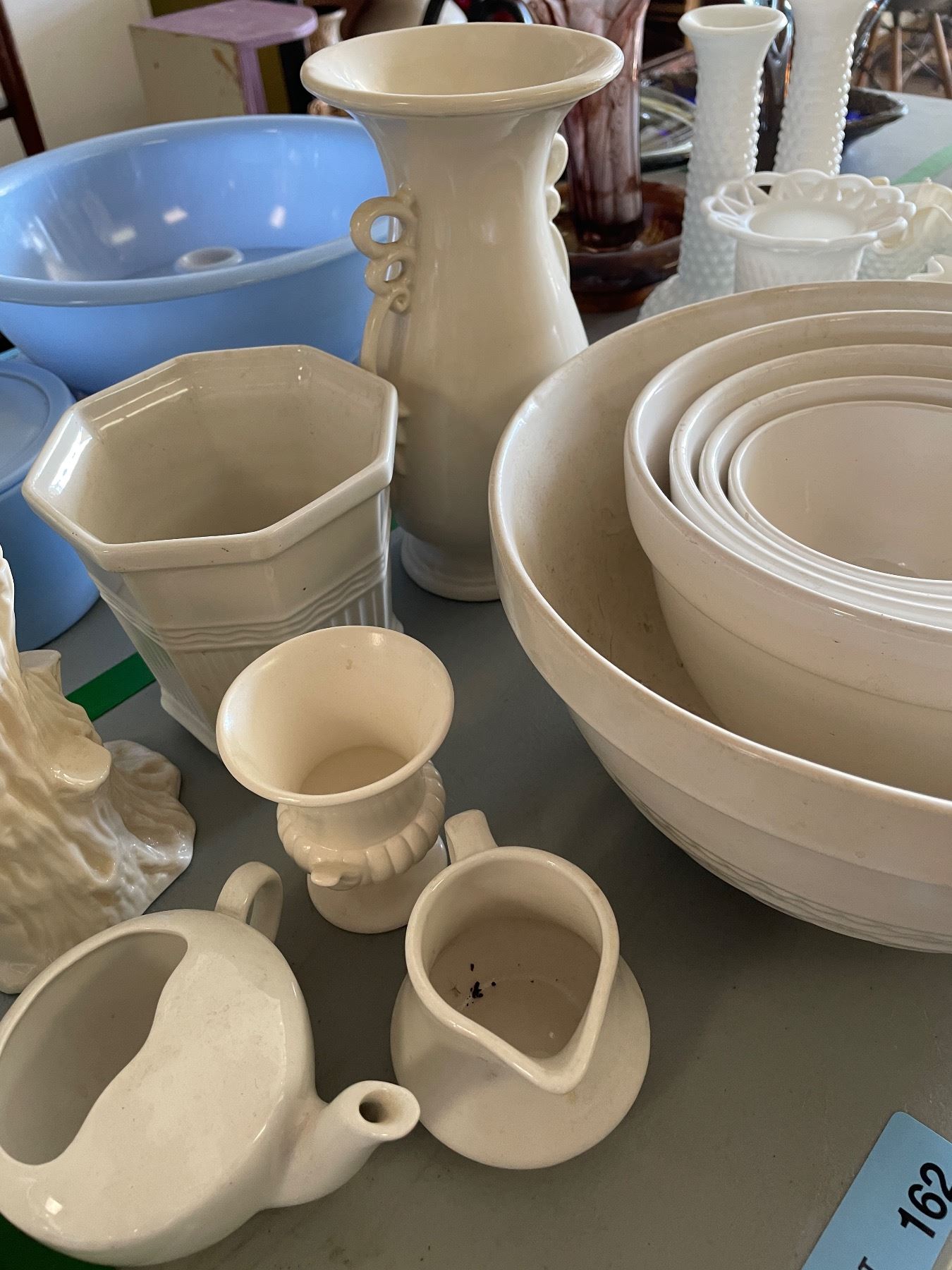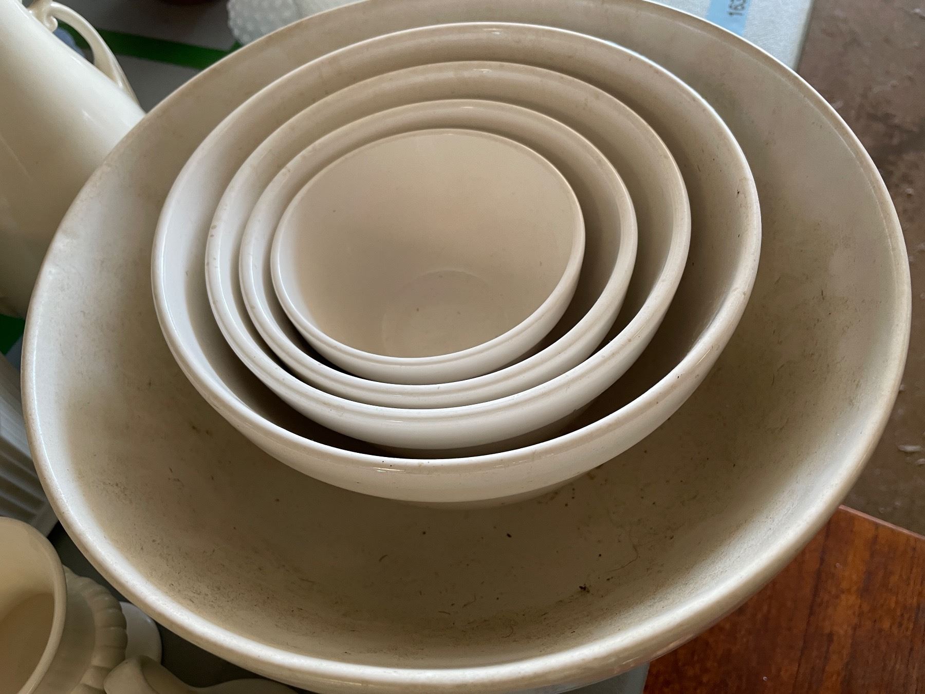 Assorted White Stoneware Mixing Bowls & Pottery Vessels