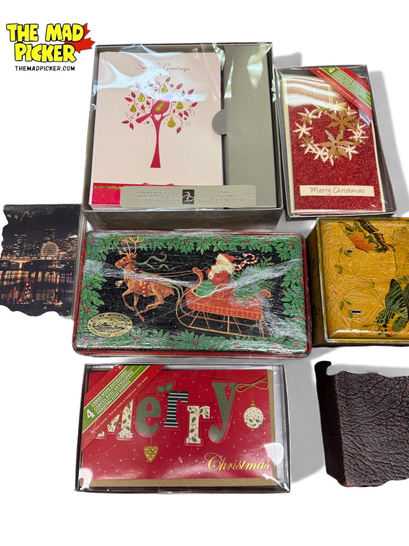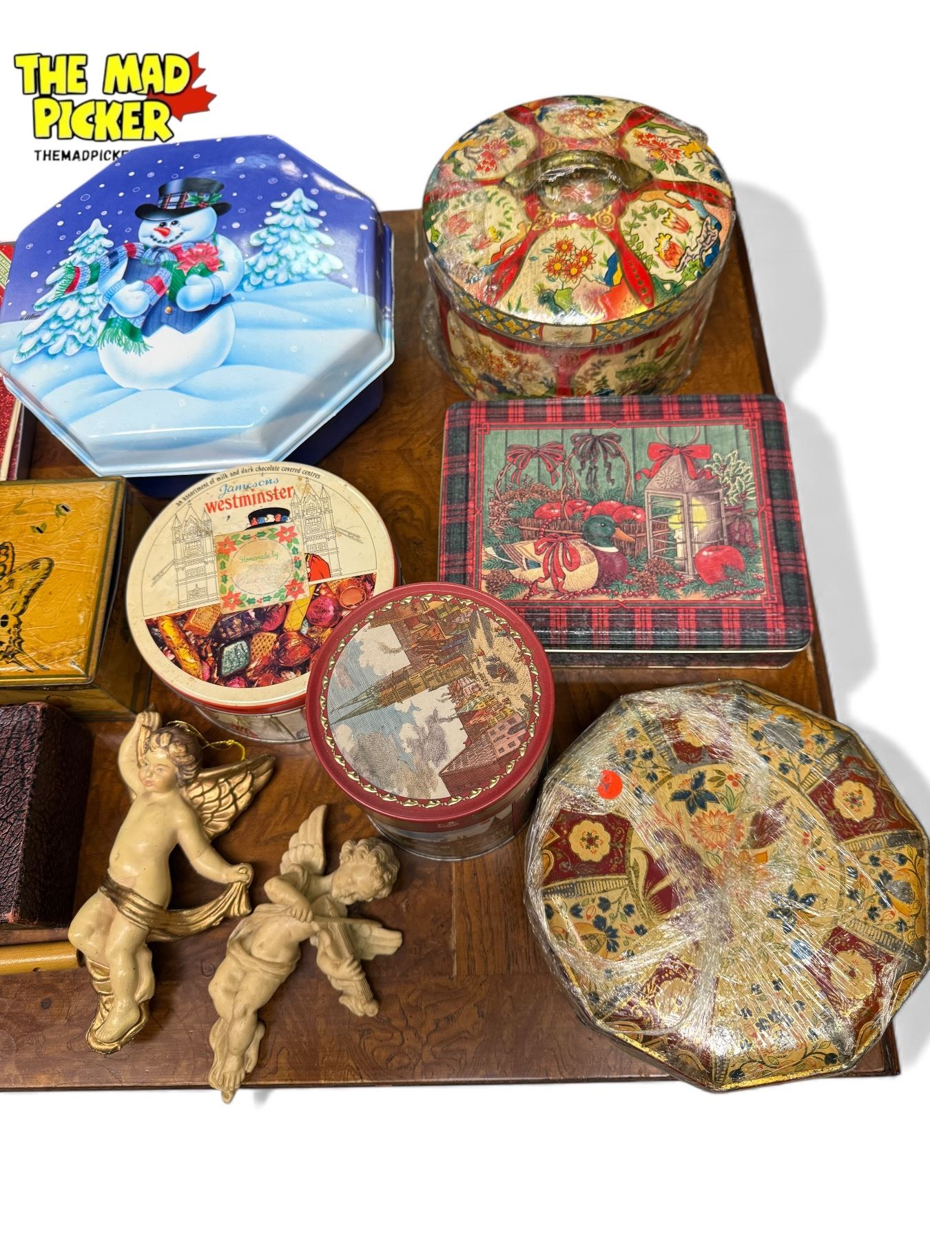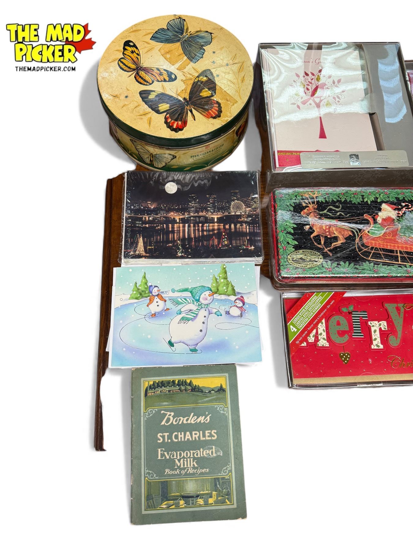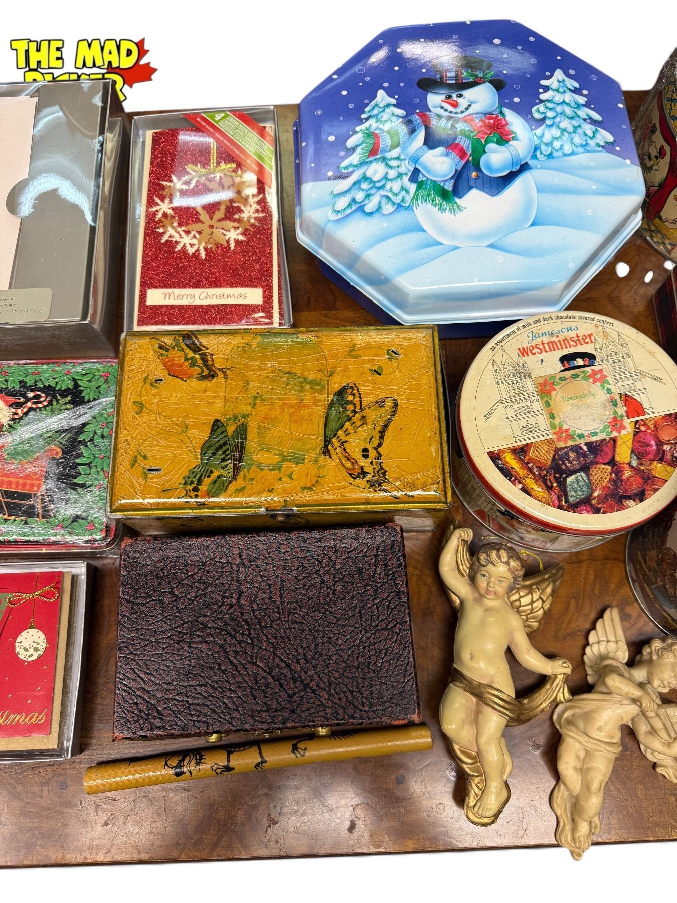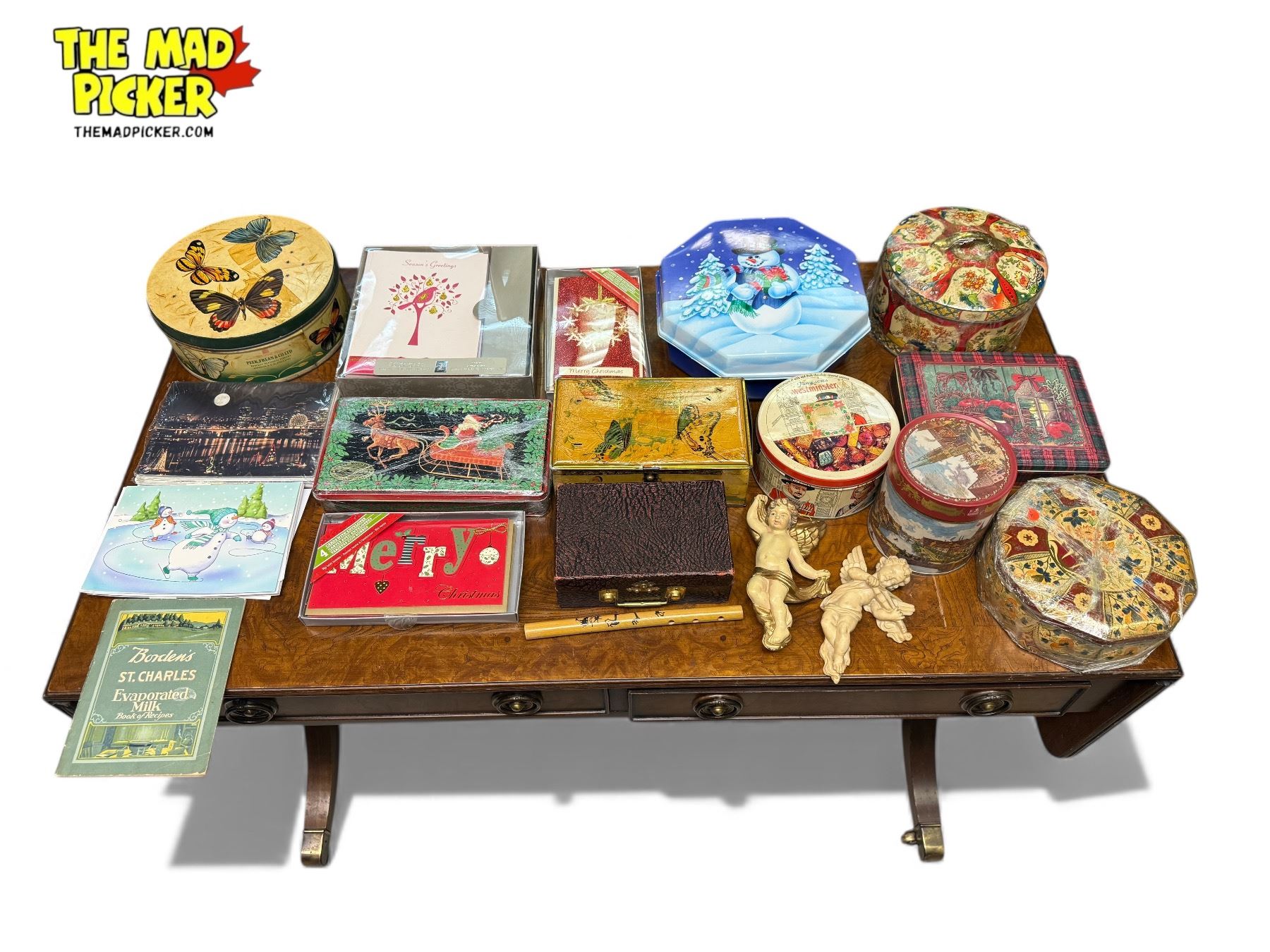 Assortments: Vintage Tins, Christmas Cards, & 2x Ornaments