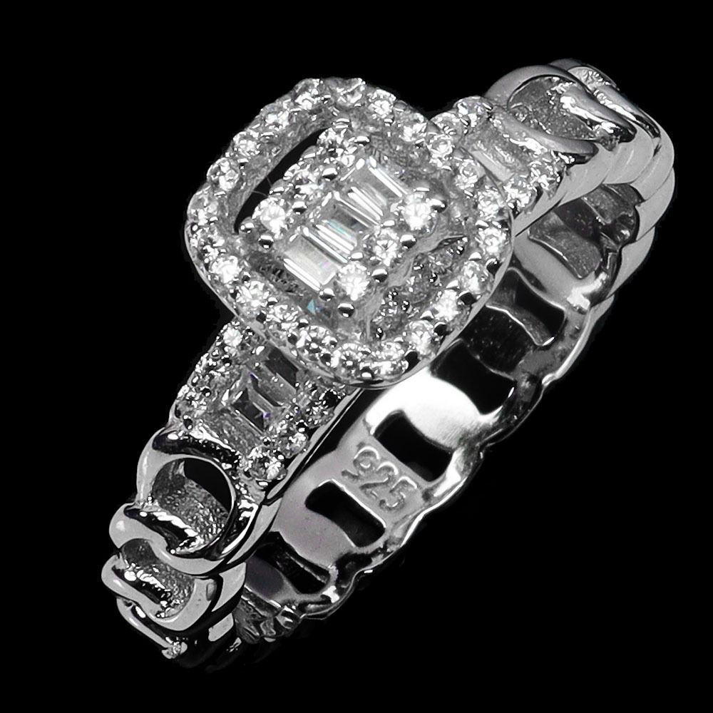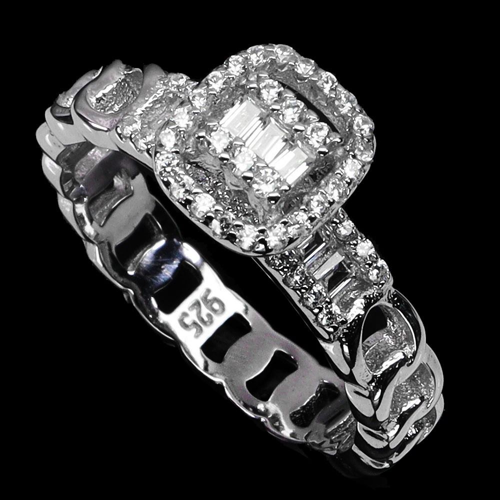 BAGUETTE CUT CZ RING IN 14K WHITE PLATED GOLD OVER 925 STERLING SILVER - SIZE 8 - APPRAISED REPLACEMENT VALUE CAD 300