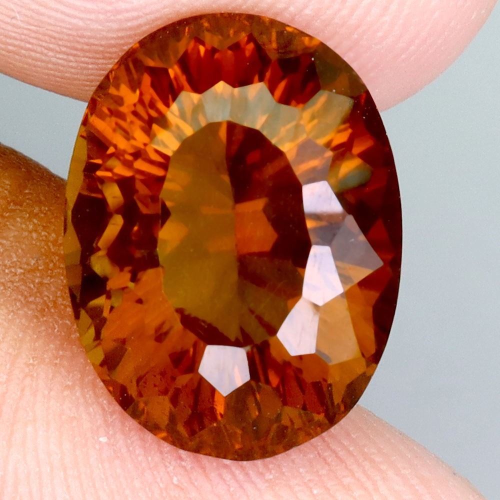 BEAUTIFUL 7.96 CARATS BRAZILIAN OVAL CONCAVE CUT UNHEATED RARE COLOR ORANGEI-YELLOW CITRINE 14X11 mm
