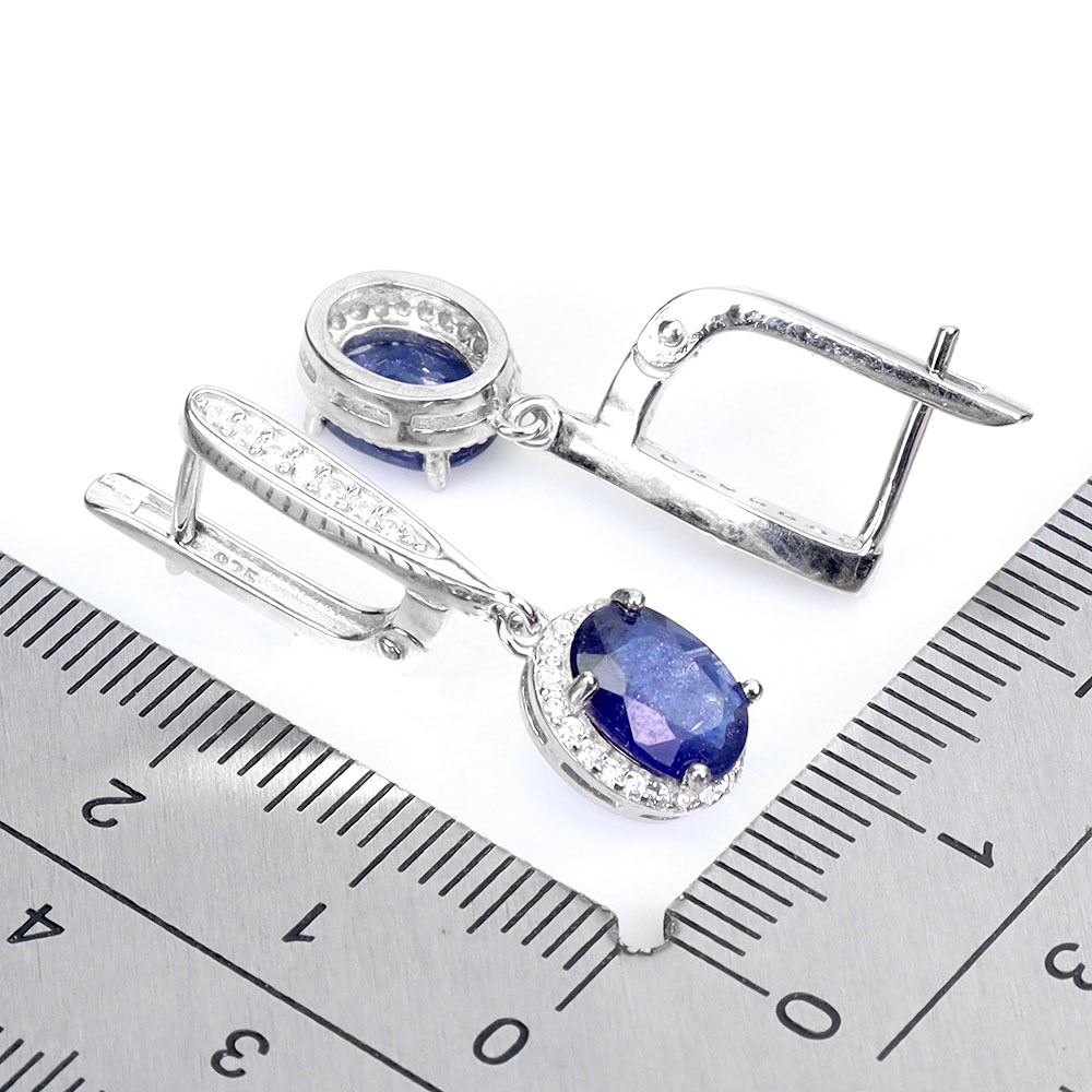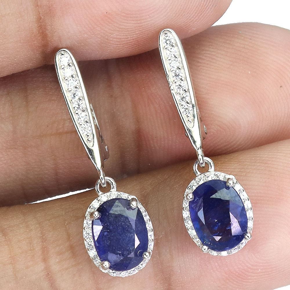 BEAUTIFUL BIG 8x6 mm BLUE SAPPHIRE EARRINGS IN 14K WHITE PLATED GOLD OVER 925 STERLING SILVER - APPRAISED REPLACEMENT VALUE CAD 940