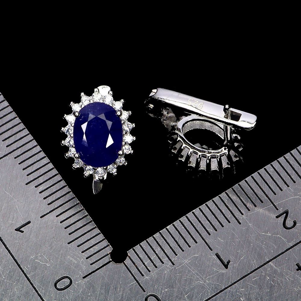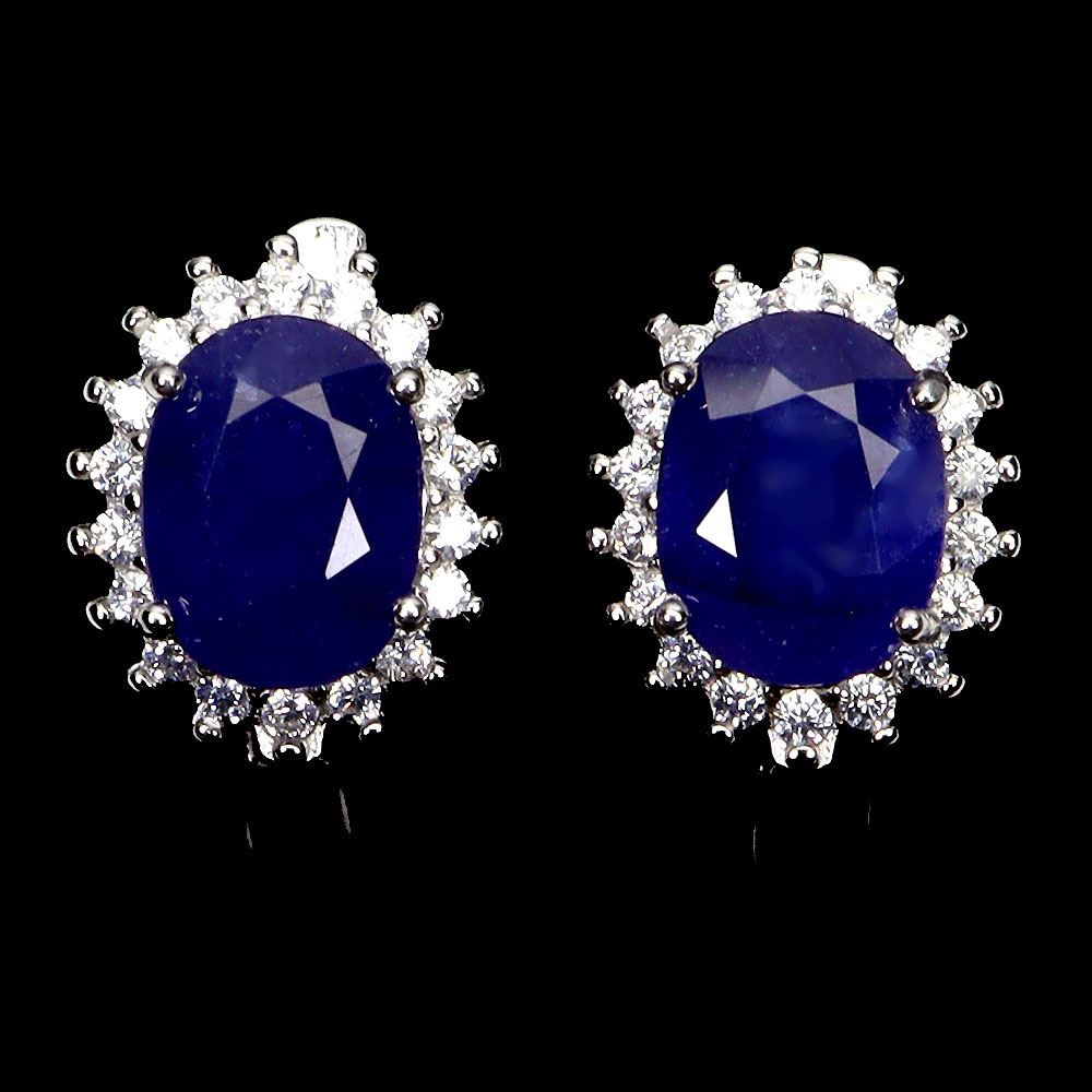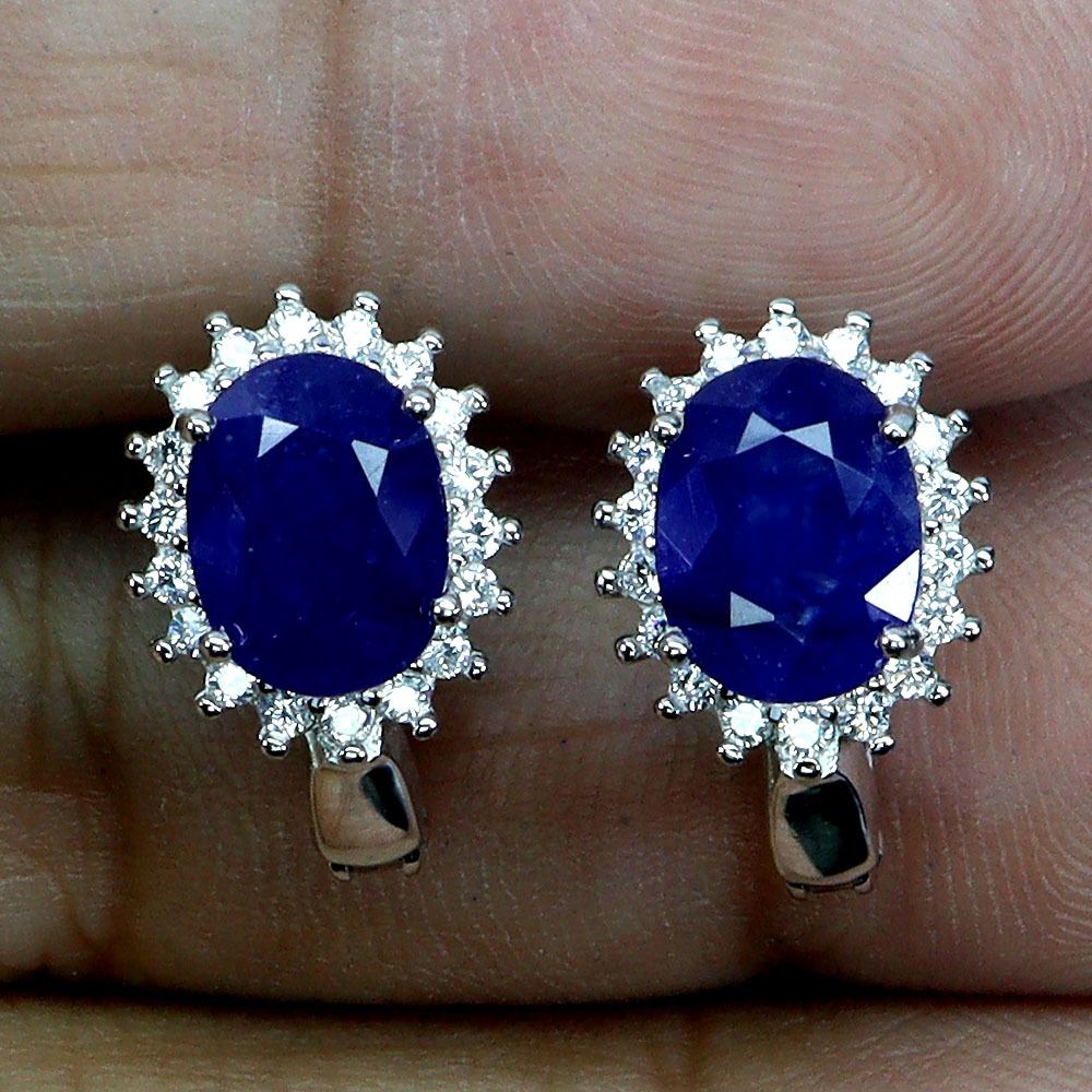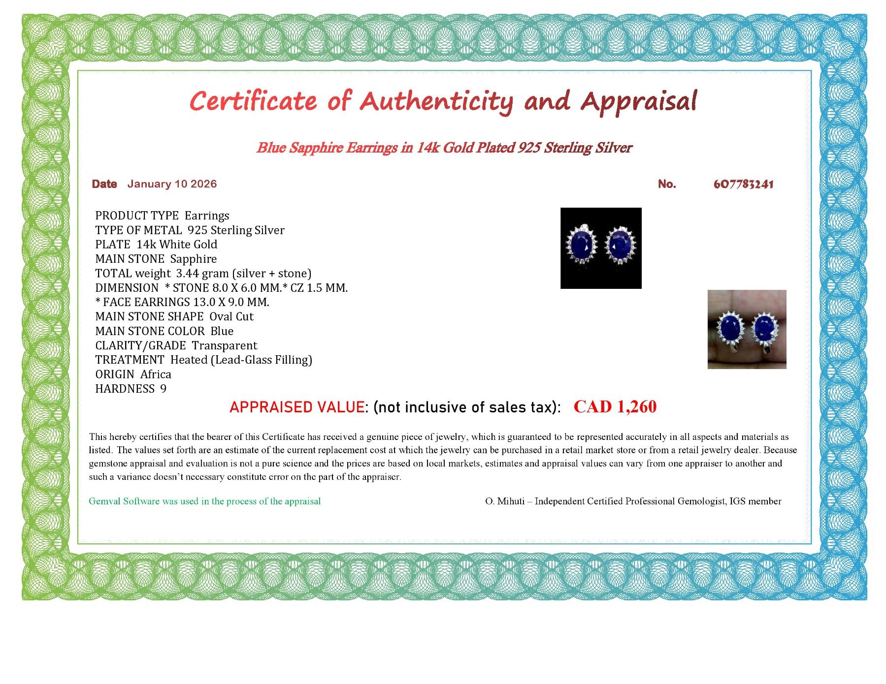 BIG 8X6 mm BLUE SAPPHIRE EARRINGS IN 14K WHITE PLATED GOLD OVER 925 STERLING SILVER - APPRAISED REPLACEMENT VALUE CAD 1,260