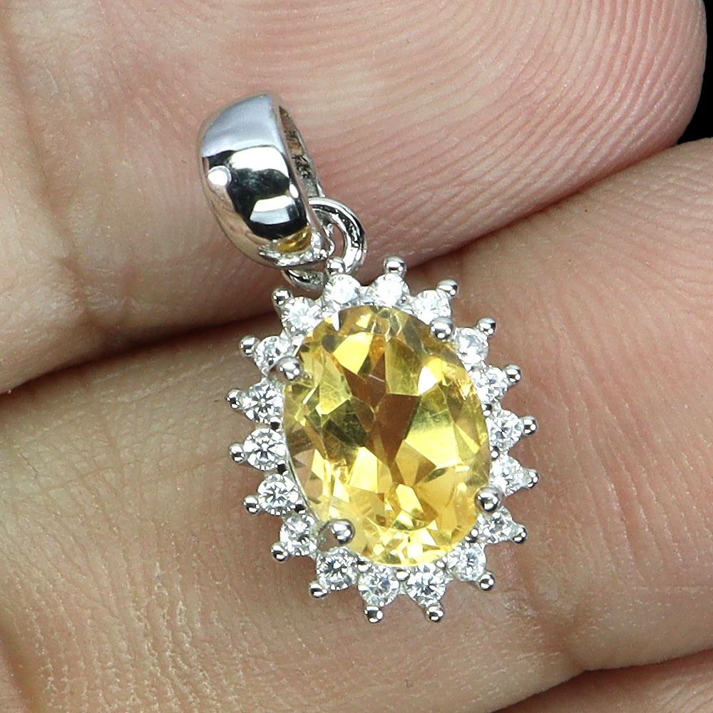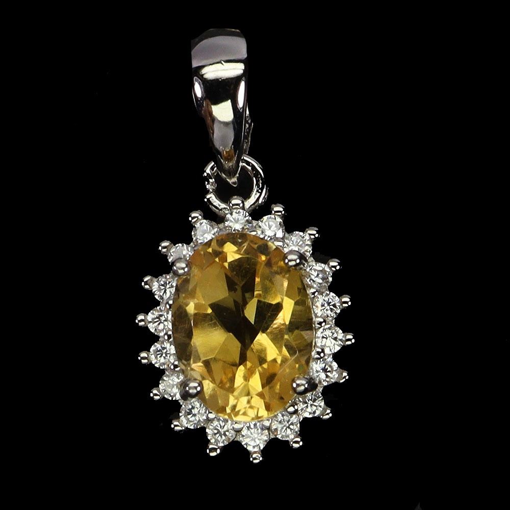 BIG 8X6 mm OVAL CUT CITRINE PENDANT IN 14K WHITE PLATED GOLD OVER 925 STERLING SILVER - APPRAISED REPLACEMENT VALUE CAD 400