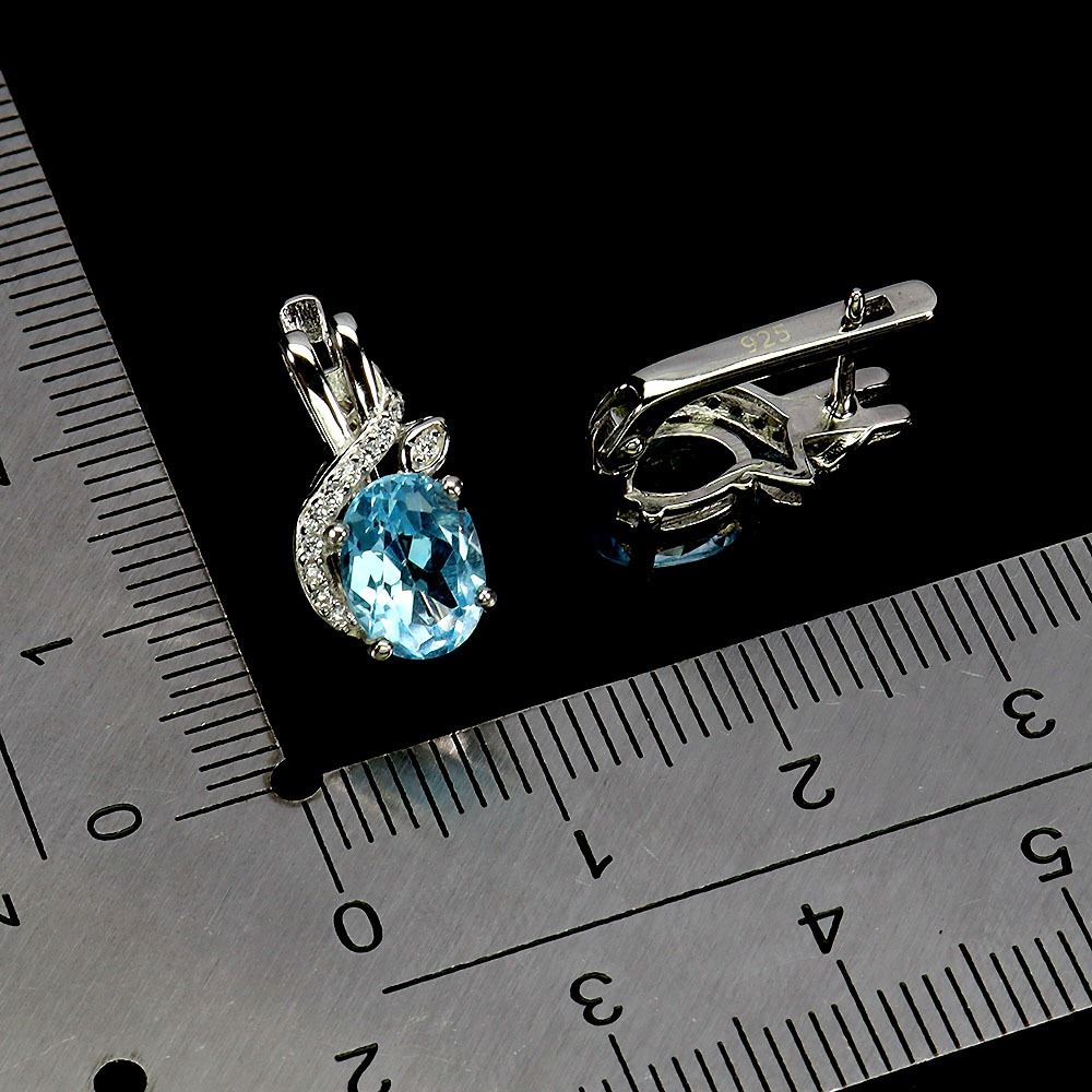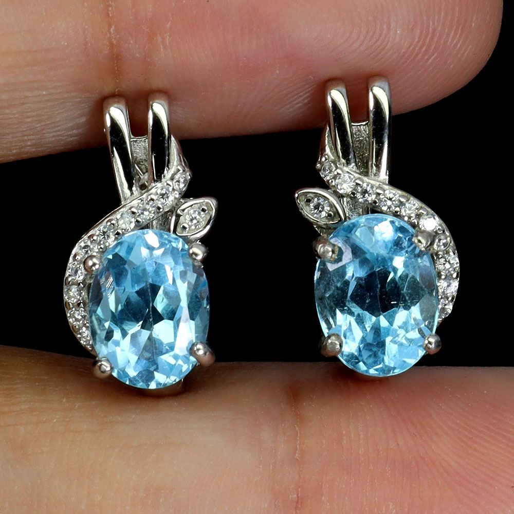 BIG 8x6 mm SWISS BLUE TOPAZ EARRINGS IN 14K WHITE PLATED GOLD OVER 925 STERLING SILVER - APPRAISED REPLACEMENT VALUE CAD 760