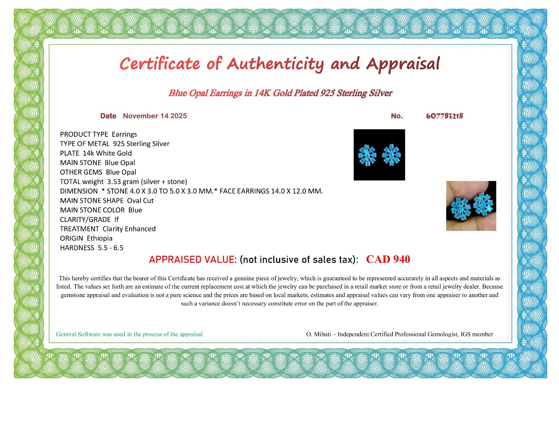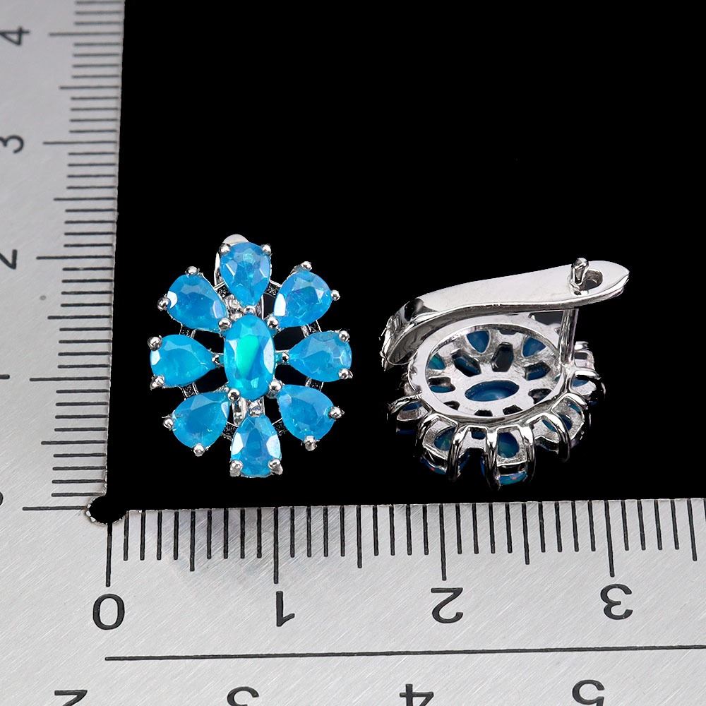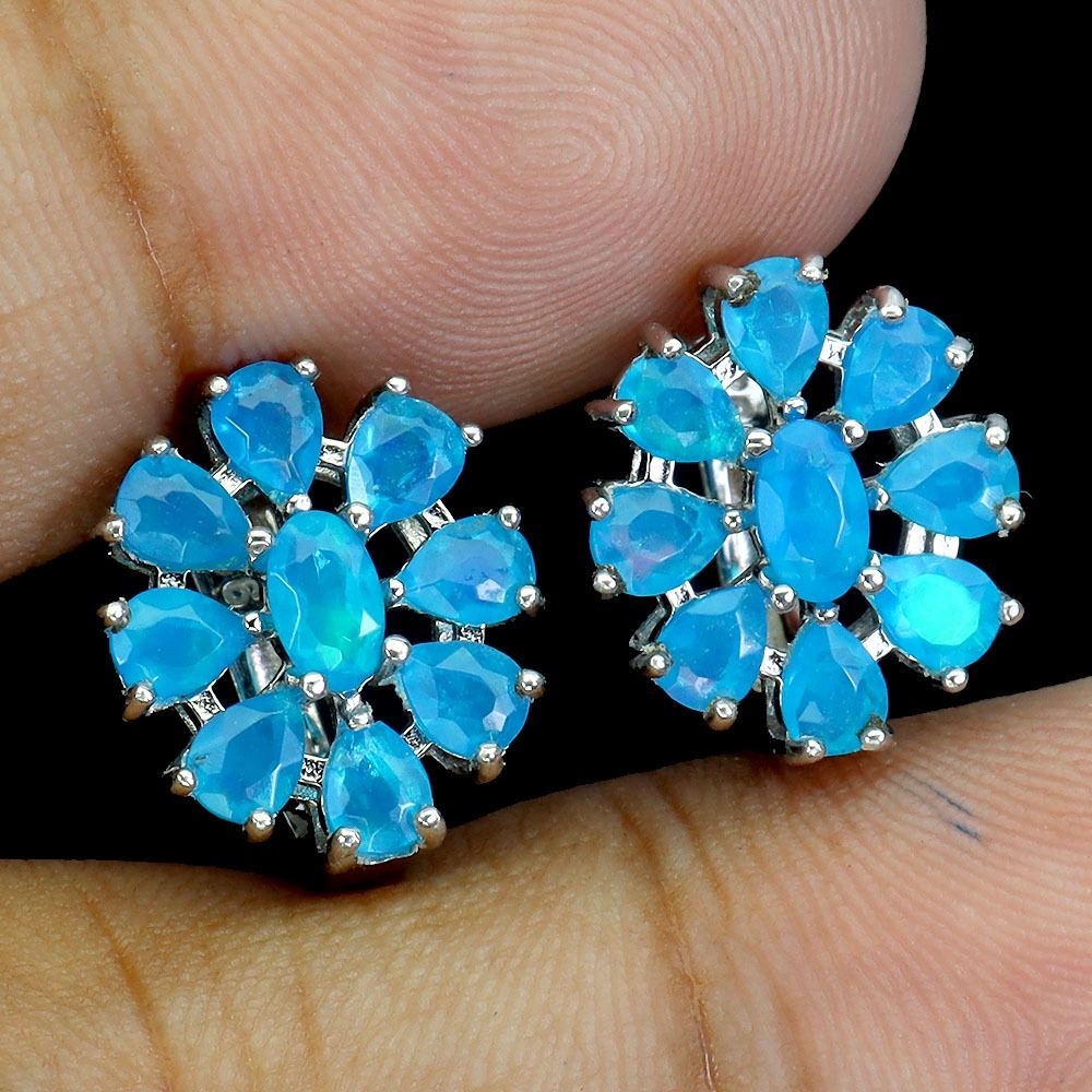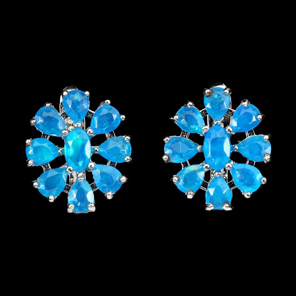 BLUE OPAL EARRINGS IN 14K WHITE PLATED GOLD OVER 925 STERLING SILVER - APPRAISED REPLACEMENT VALUE $ 940