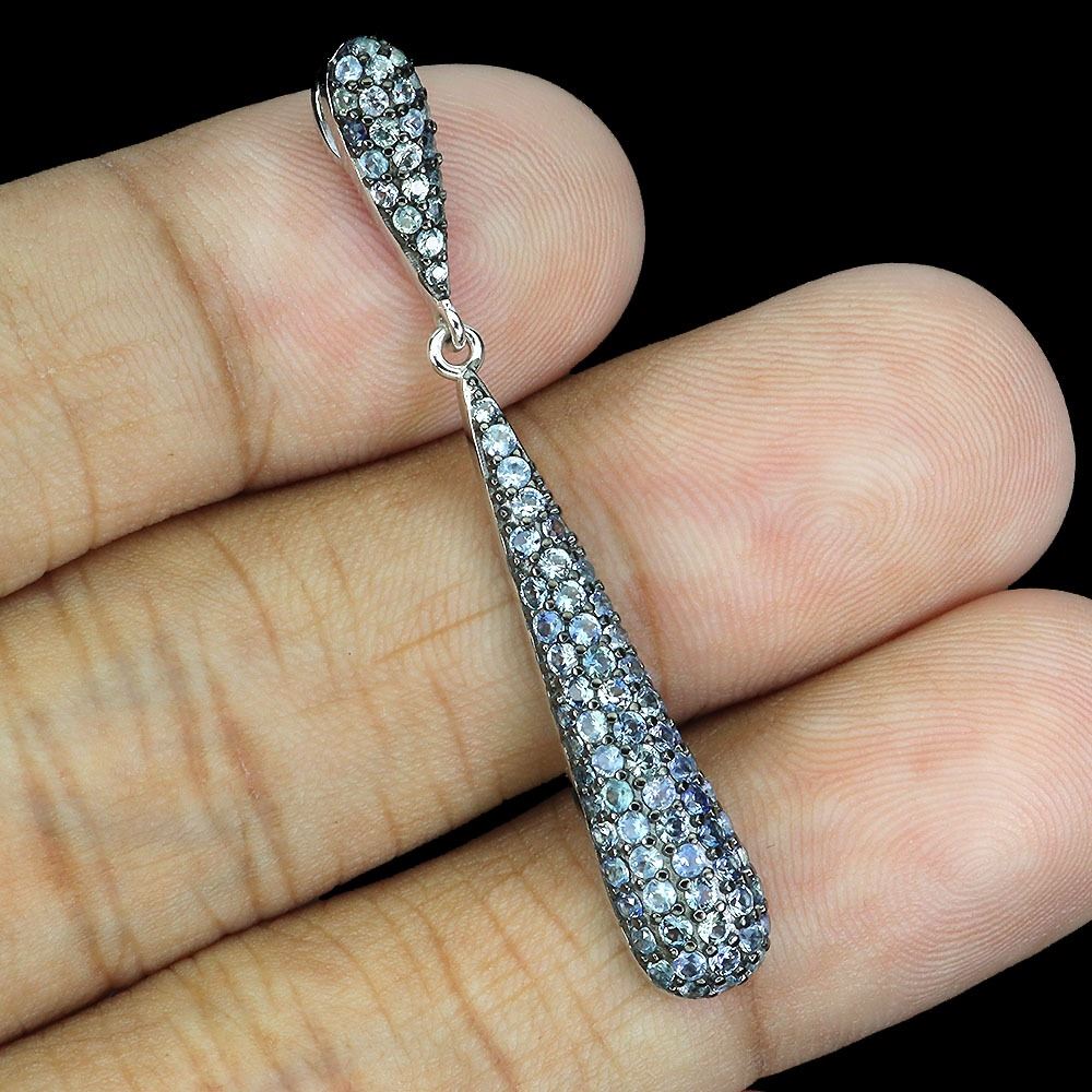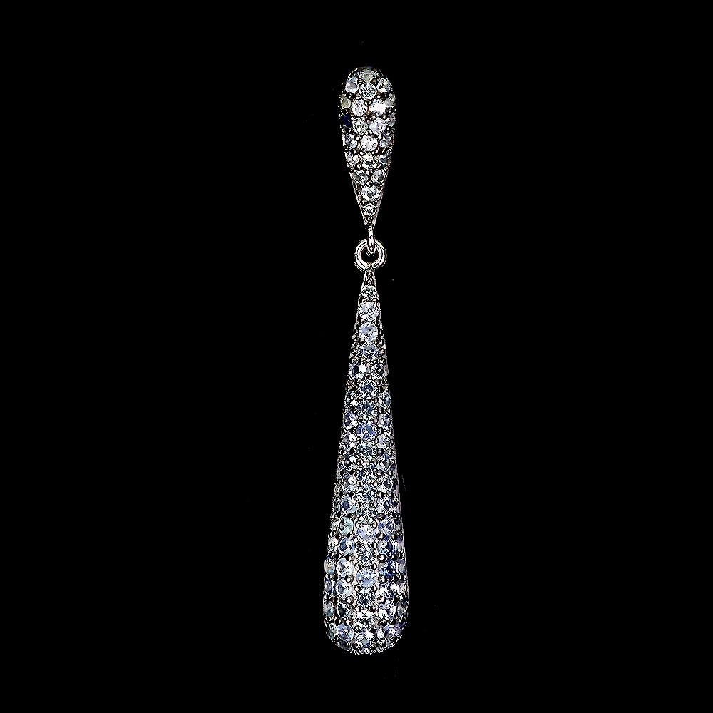 BLUE SAPPHIRE DIAMOND CUT PENDANT IN 14K WHITE GOLD PLATED OVER 925 STERLING SILVER - APPRAISED REPLACEMENT VALUE CAD 890