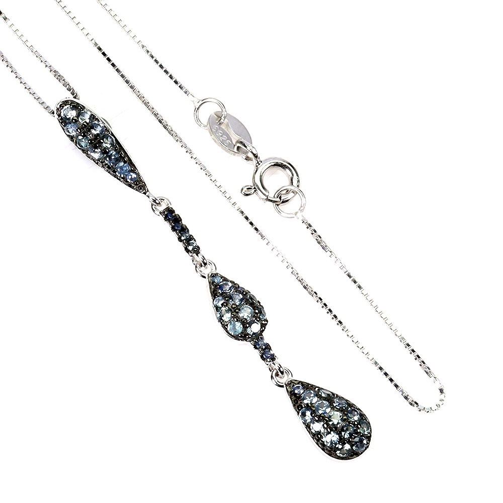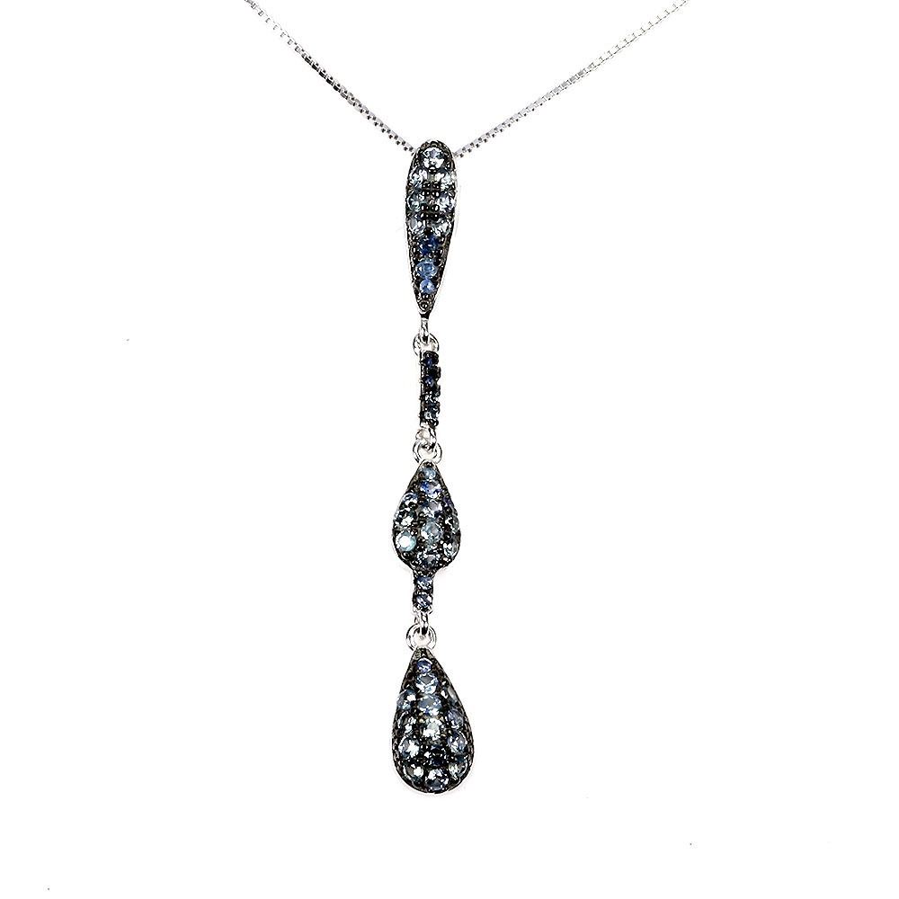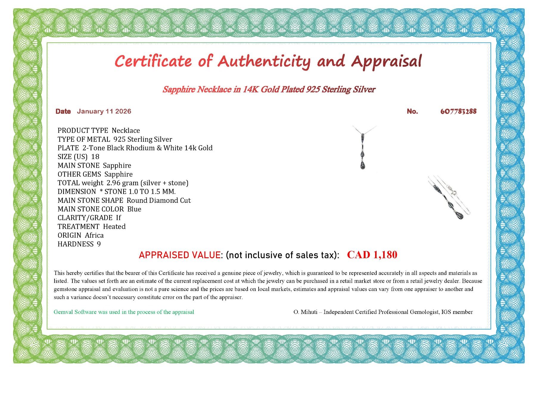 BLUE SAPPHIRE ROUND DIAMOND CUT NECKLACE IN 14K WHITE GOLD PLATED OVER 925 STERLING SILVER - 18 INCHES LENGTH - APPRAISED REPLACEMENT VALUE CAD 1,180