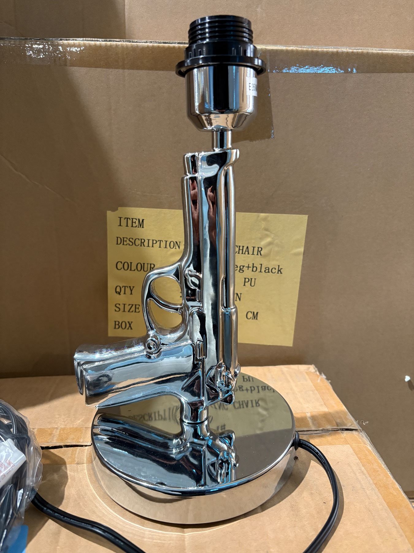 BNIB - 12in Handgun style chrome table lamp