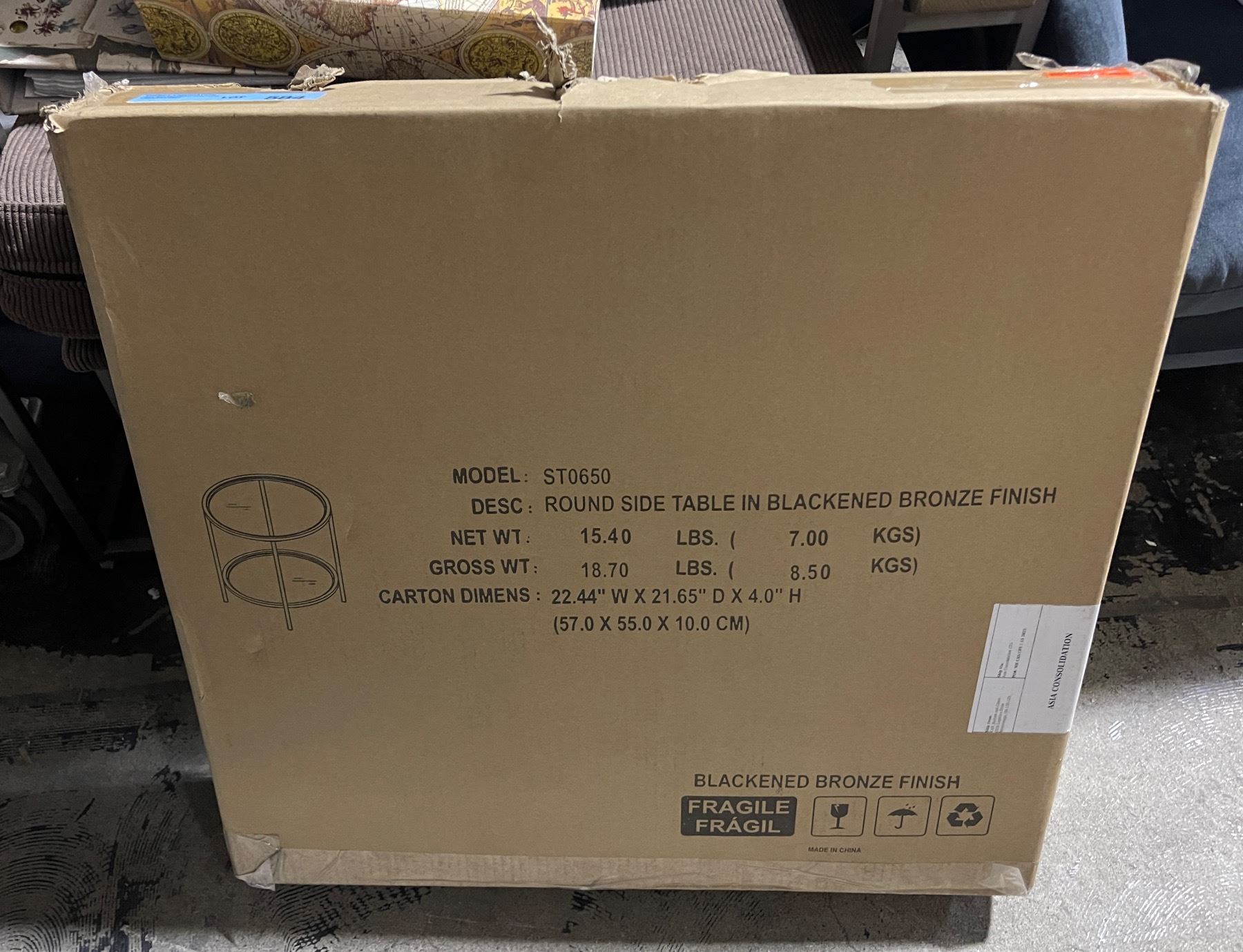 BNIB 20"W Round Side Table in Blackened Bronze - RV: $109 CAD (ST0650)