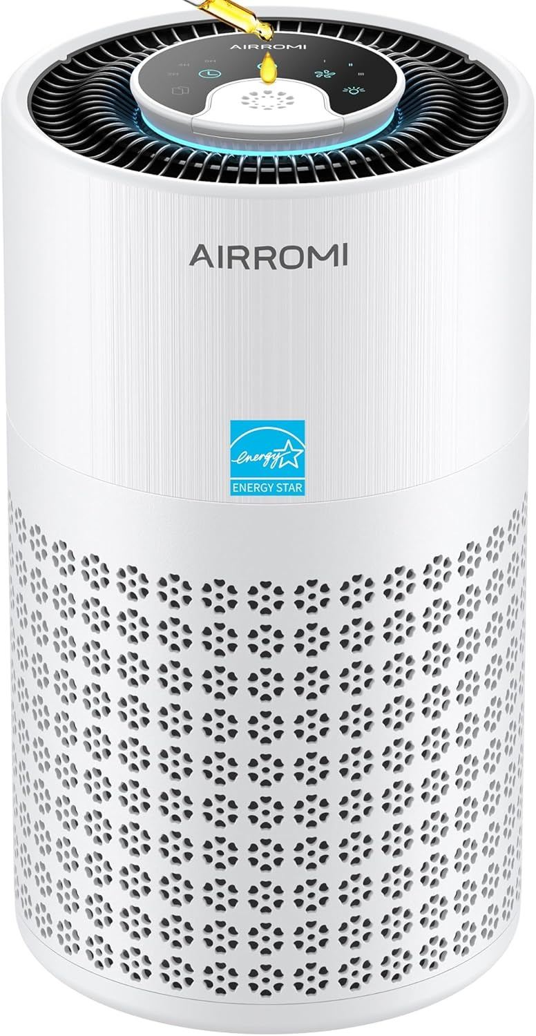 BNIB AIRROMI Air Purifier for Bedroom with HEPA 3-in-1 Filter, Pet Air Purifier for Home Cat Pee Smell, Covers Upto 990 Ft², Quiet 360°intake Air Cleaner for pet hair,allergies,pollen,Smoke,A2001 White Retail $60