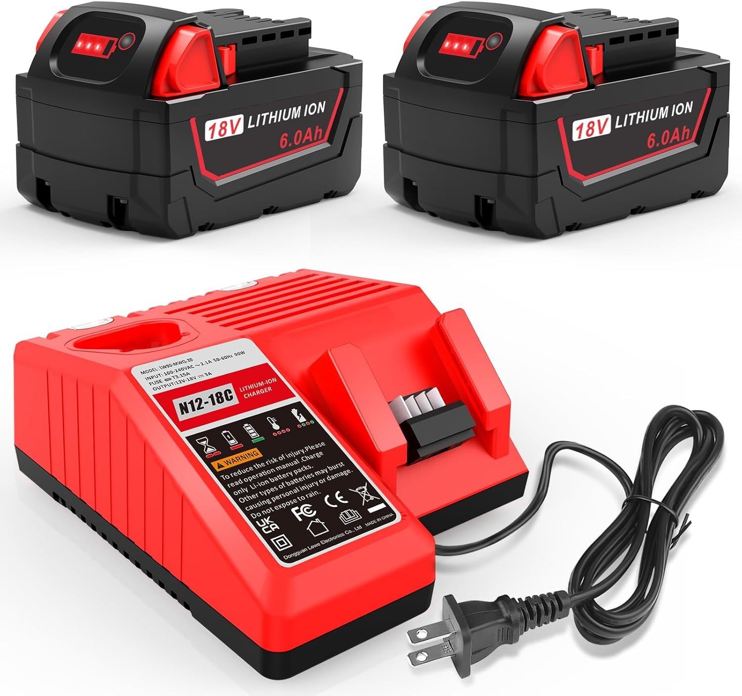 BNIB ARyee 2 Pack 18V 6.0Ah Replacement for Milwaukee M18 Battery and Charger Combo kit Retail $93