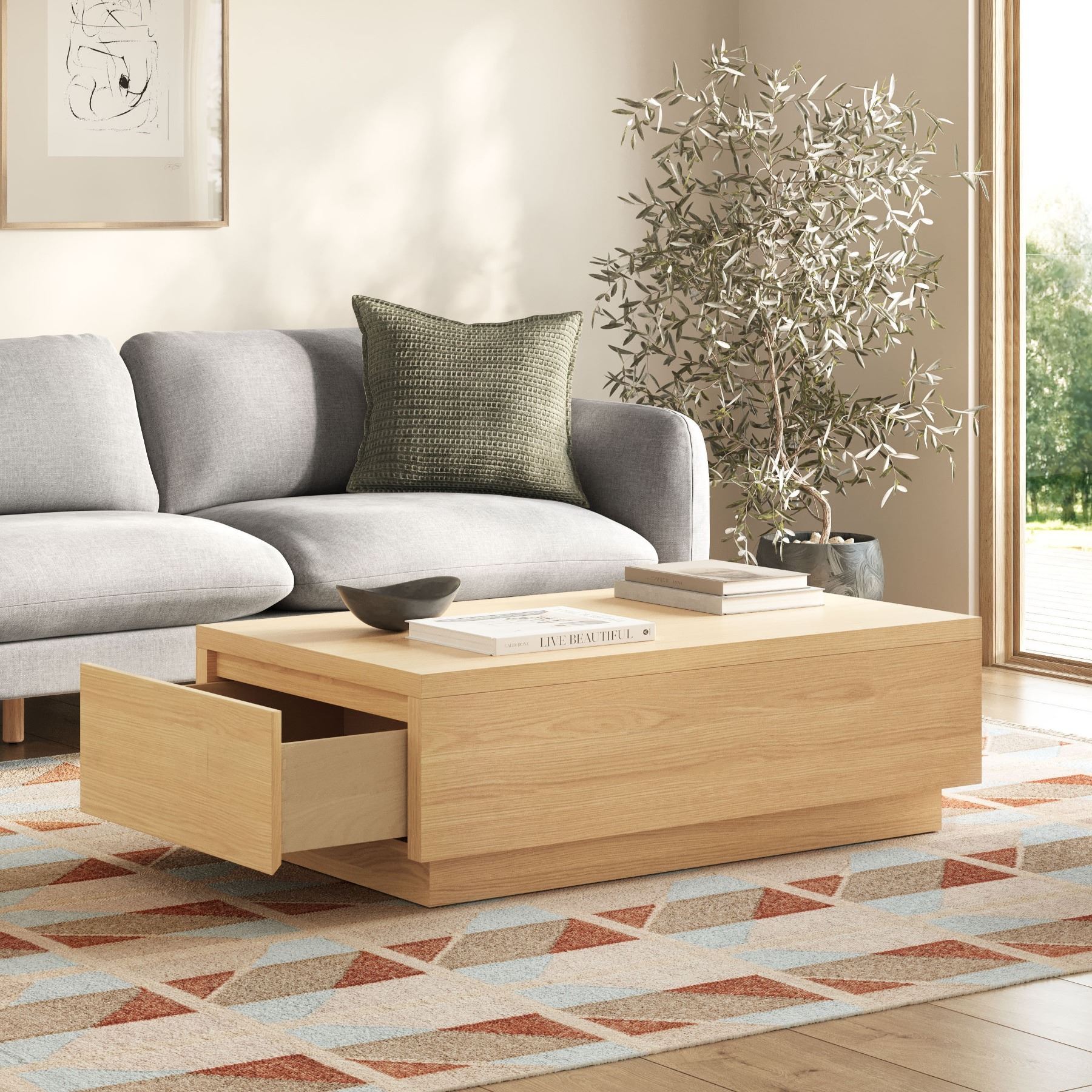 BNIB Article LEIF 47" White Oak Storage Coffee Table ART4683 RV: $929