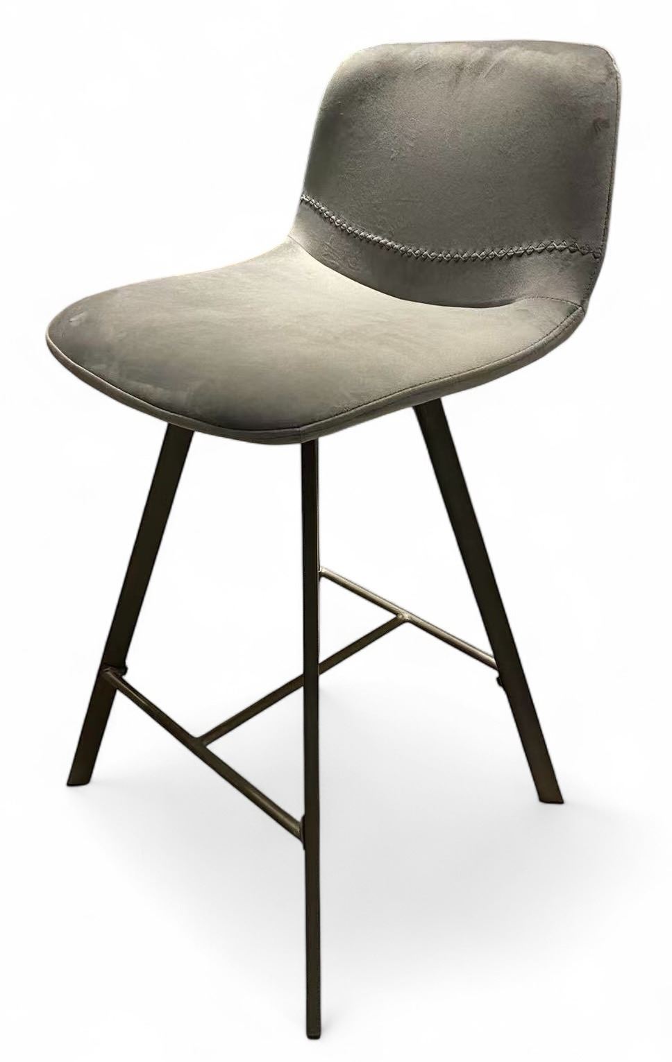 Brand new in box. modern, simple oak‑colour bar table measuring about 55”L ◊ 28”D ◊ 36”H. Concrete finish option available. Selected variant: Group of 4 Bar Chair - Grey Velvet.