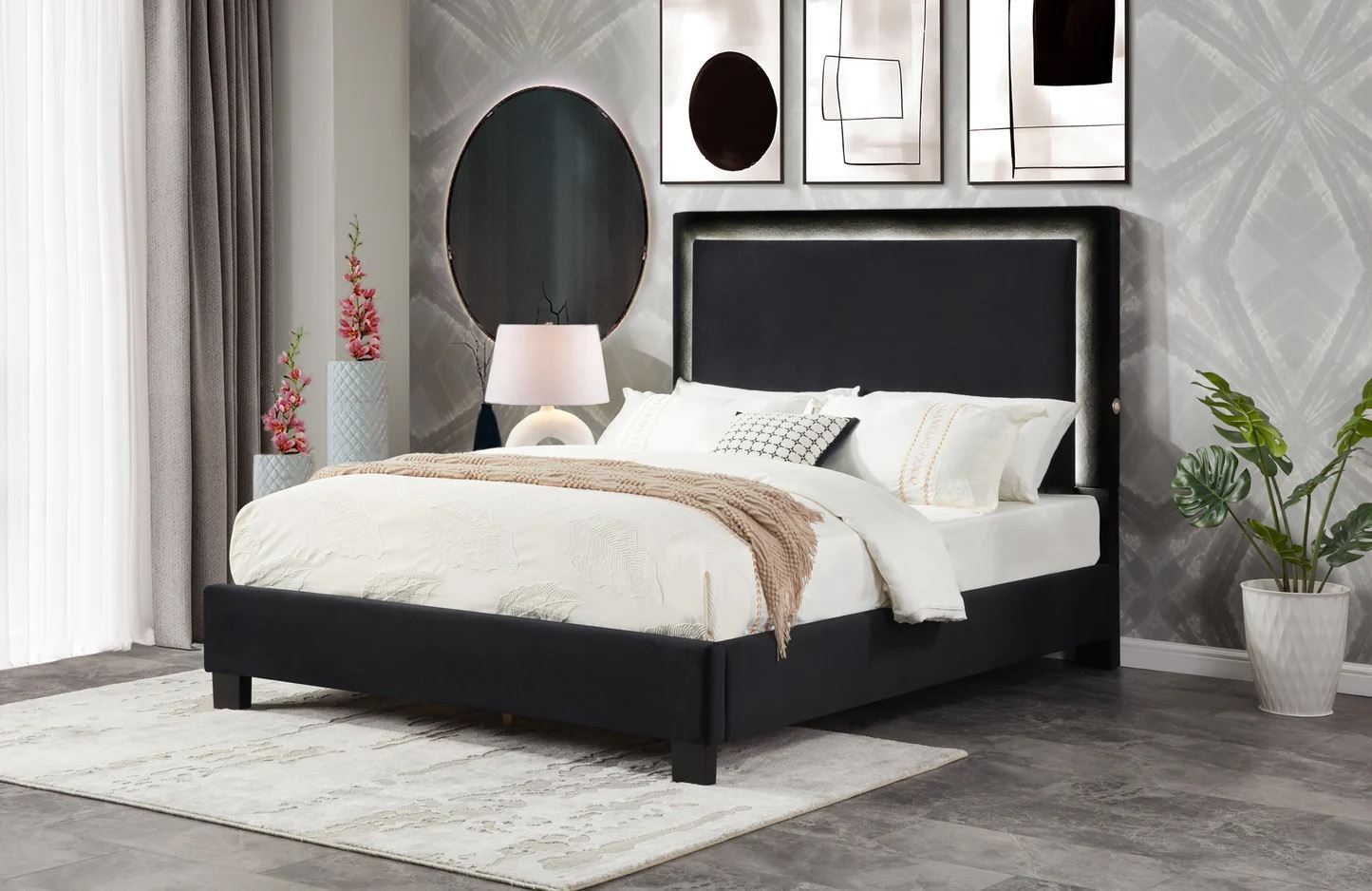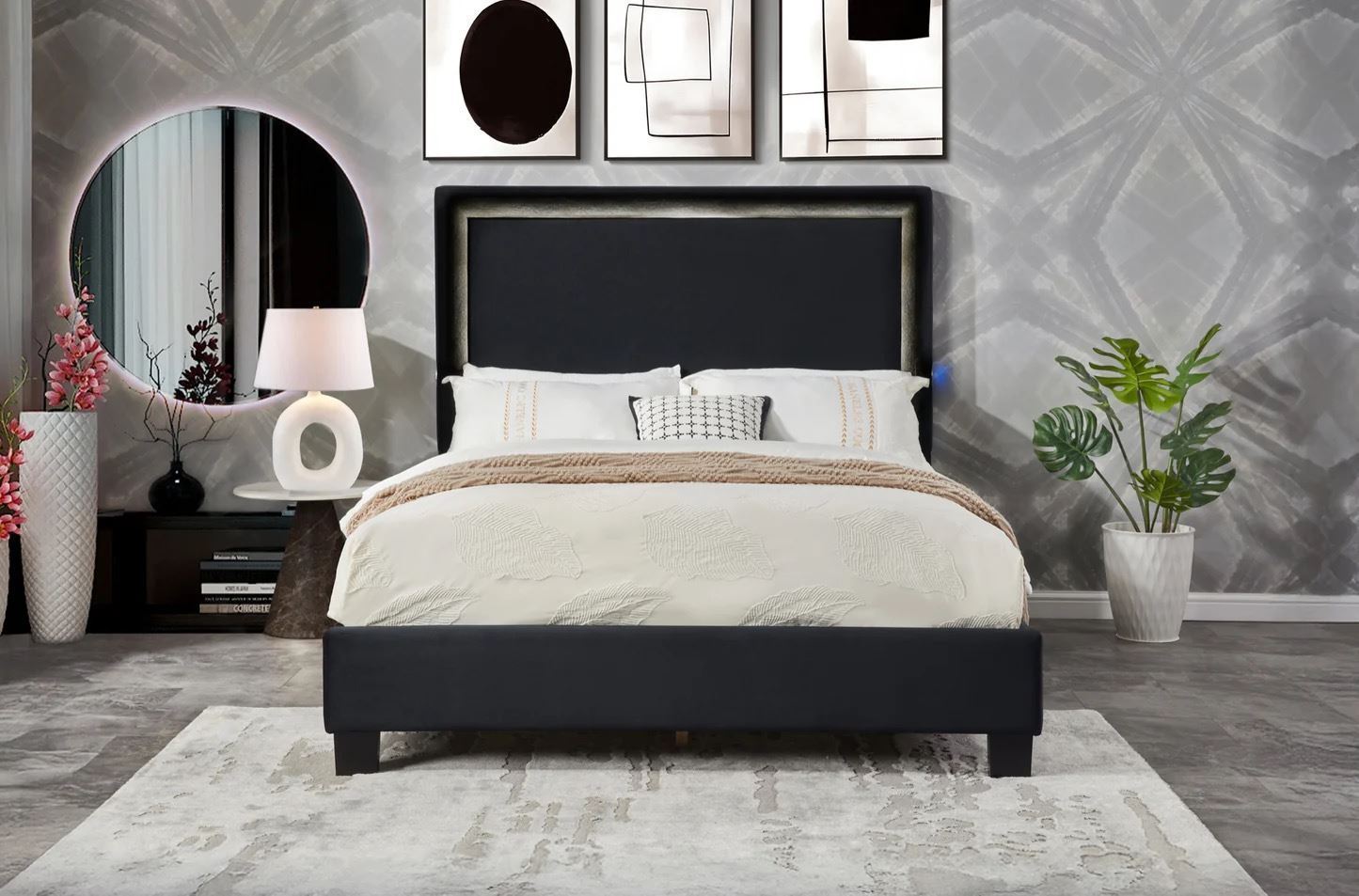 BNIB - Black Queen bed with LED Headboard (2 boxes) - 64 x 86.25 x 55.5 - Retail Price: $899.99 - VF-1991BK-1
