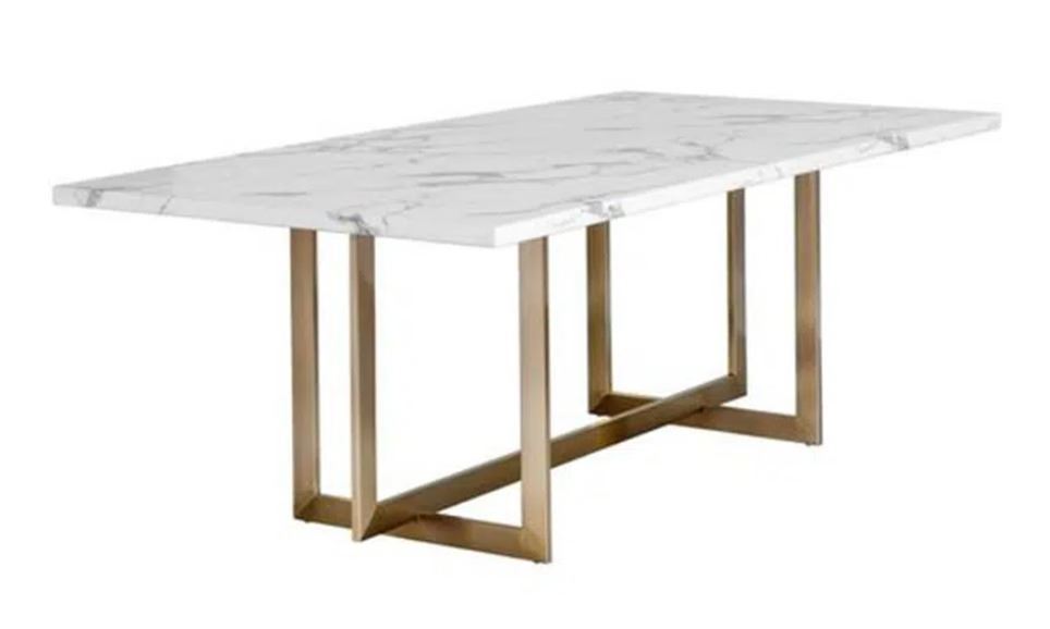 Brand new in box. beautiful round marble dining table with artistic base. Size options include 59or 71diameter and base finishes in gold or silver. Selected variant: 59" Gold.