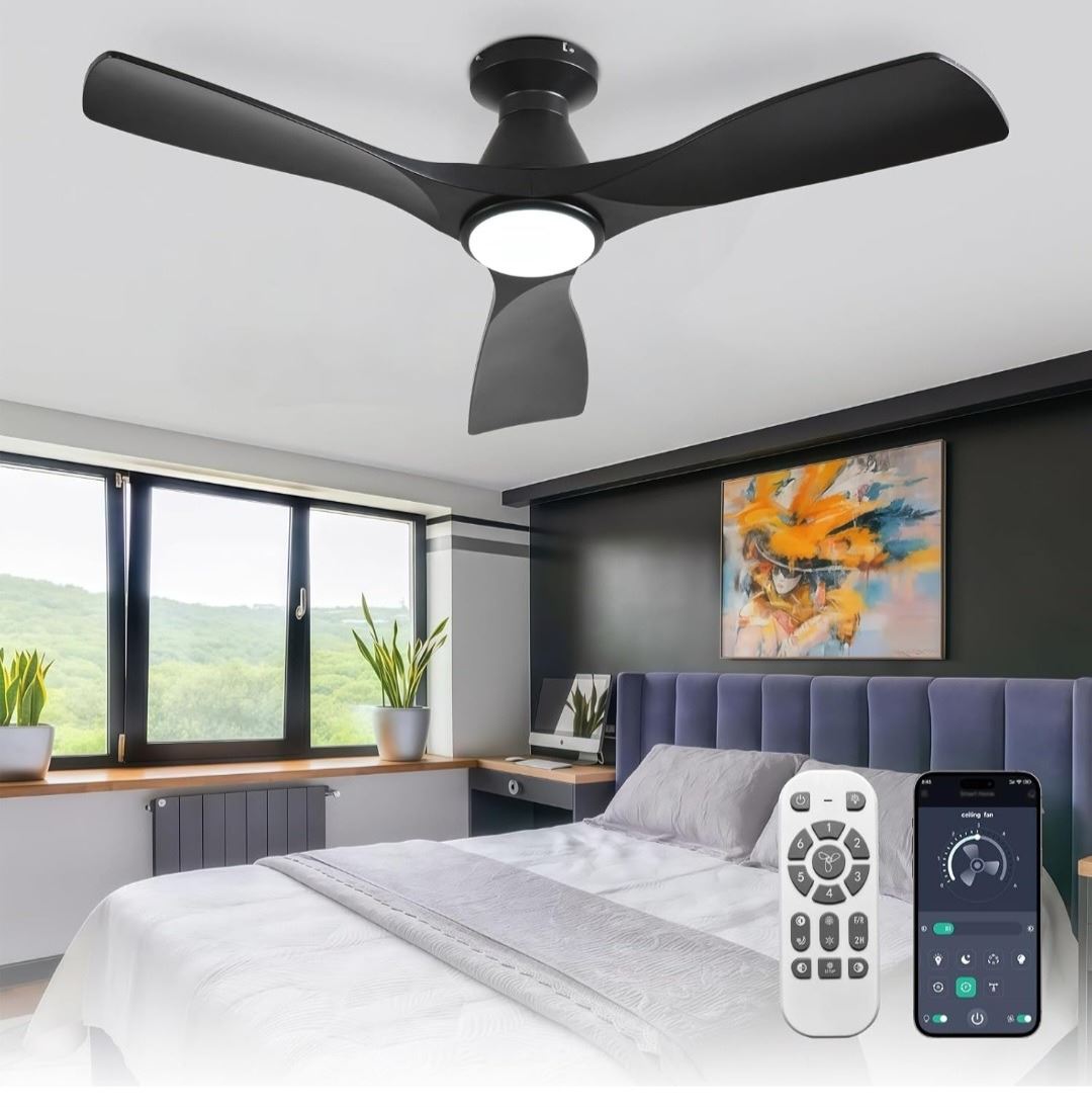 BNIB Depuley 42-Inch Ceiling Fans with Lights: Black 3 Blade Flush Mount Retail $80