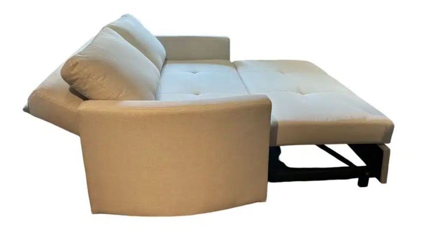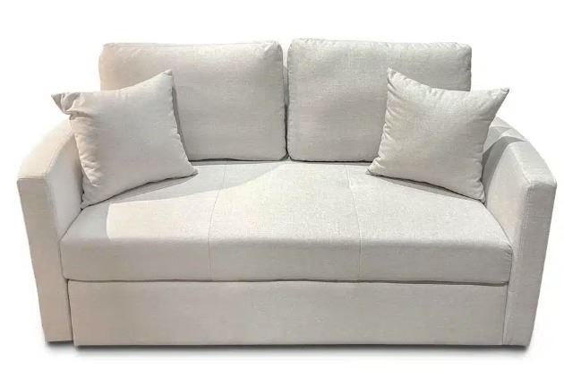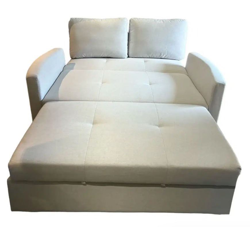 Brand new in box. fabric loveseat sofa bed with multiple back positions. As a loveseat it measures about 65L x 35D x 36H; as a bed 76x 60; colours beige or light grey. Selected variant: Light Grey.
