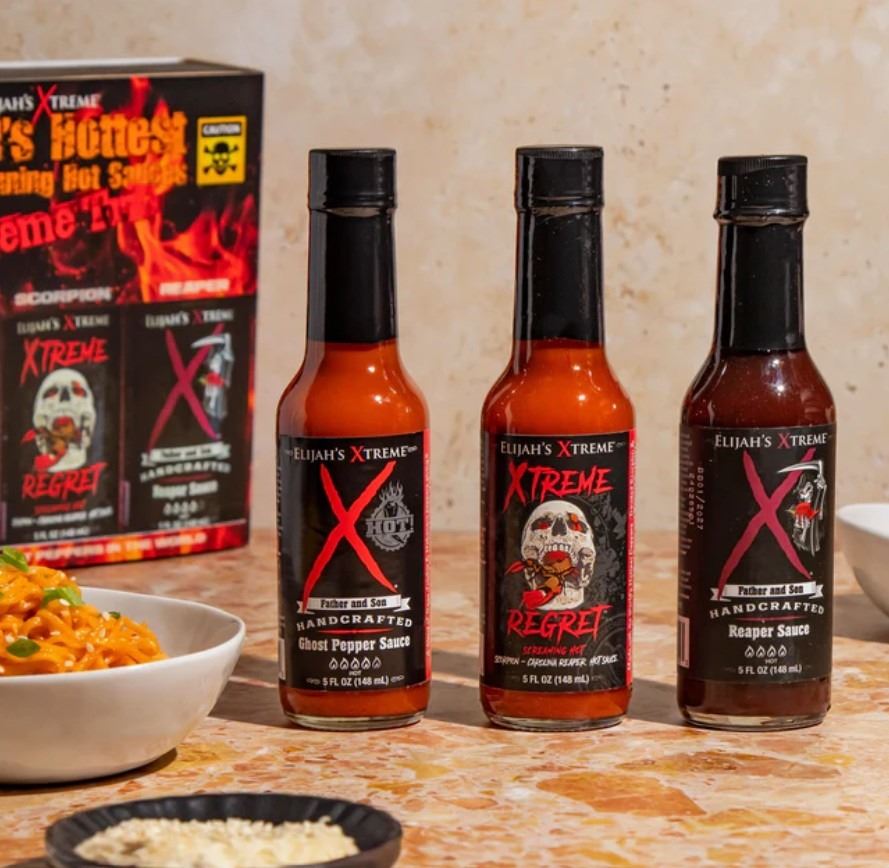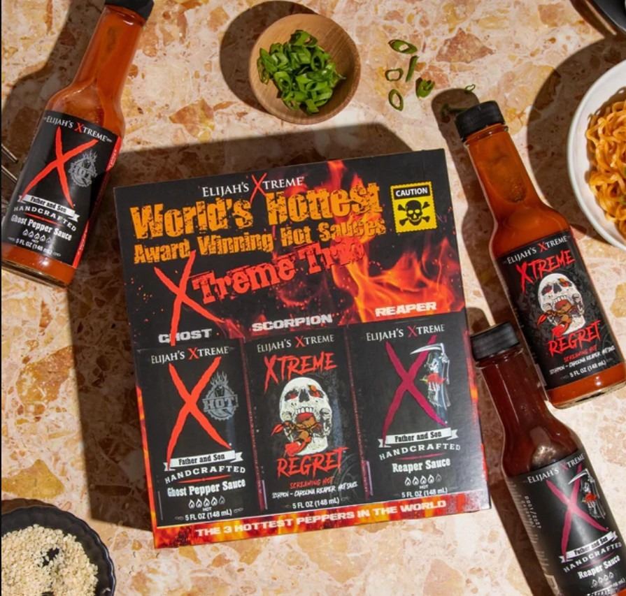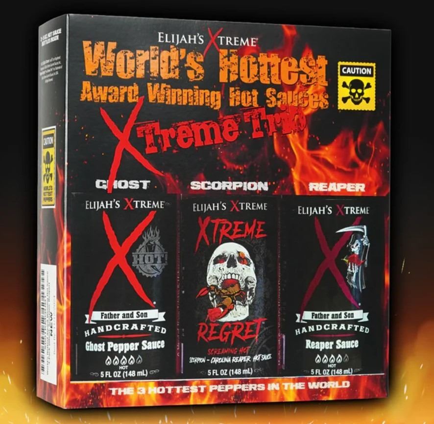 BNIB Group of 4 Worlds Hottest Xtreme Trio Hot Sauce Variety Pack Retail $47/per box