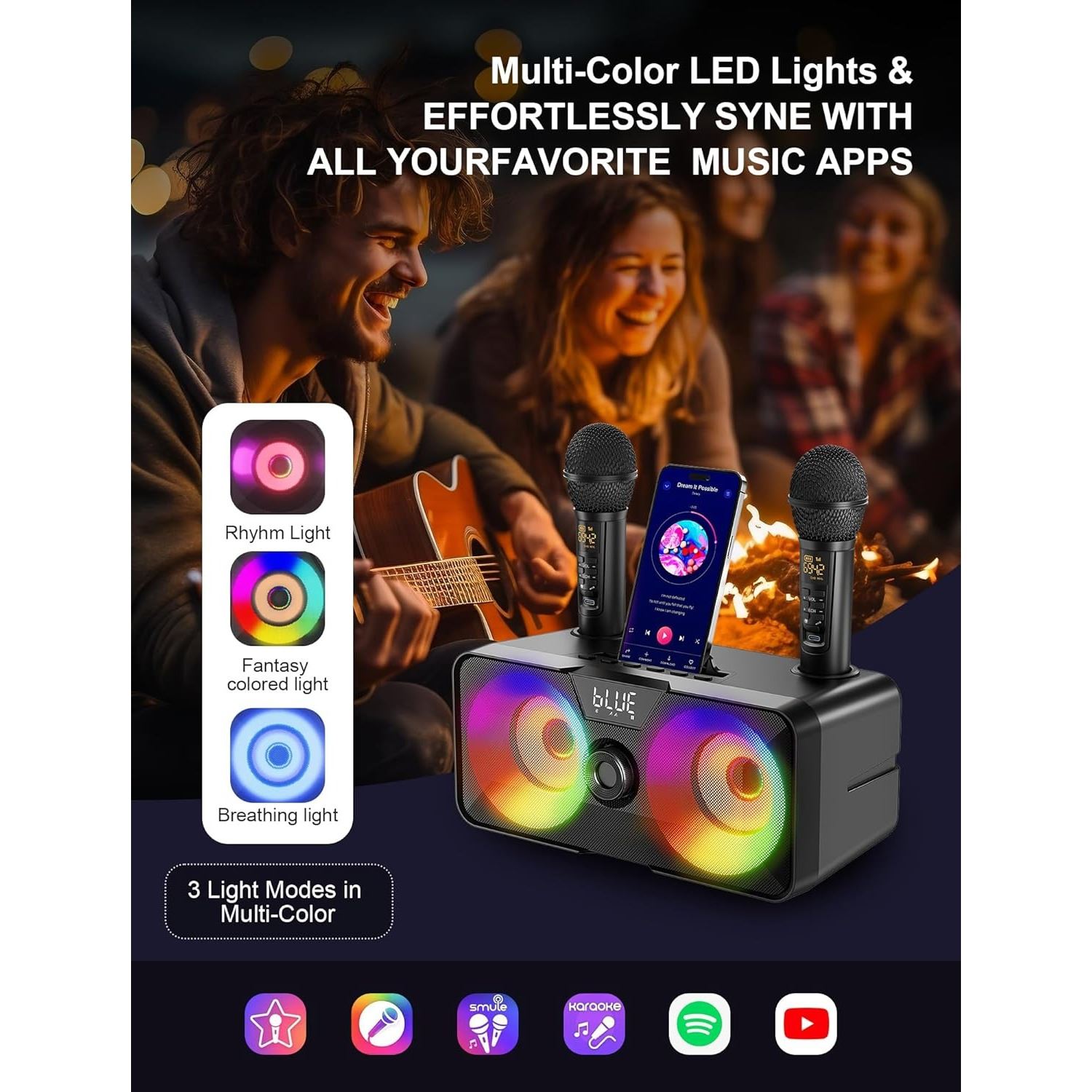 BNIB Karaoke Machine for Adults Kids with 2 UHF Wireless Microphones (Black) - Retail: $99.99