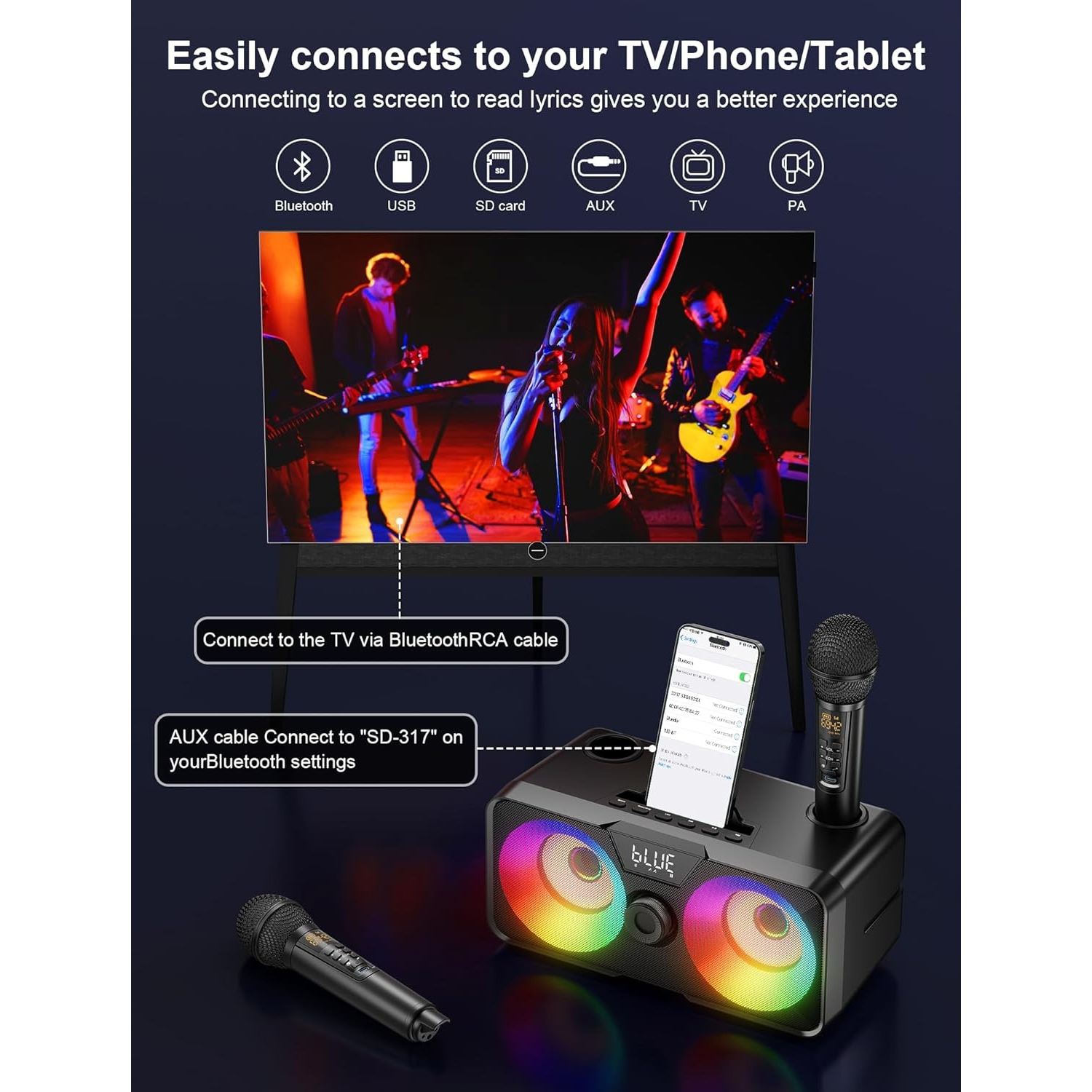 BNIB Karaoke Machine for Adults Kids with 2 UHF Wireless Microphones (Black) - Retail: $99.99