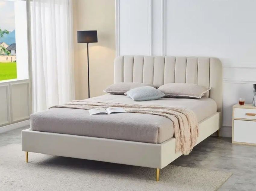 BNIB Las Vegas King - Beige Platform Bed Frame