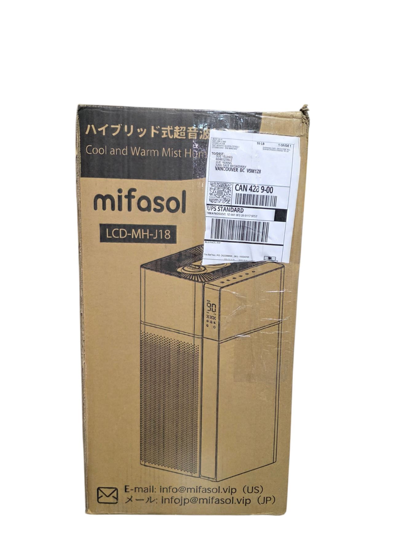 BNIB Mifasol Humidifier 20L/5.3Gal - White - RV: $234 CAD (Model: LCD-MH-J18)