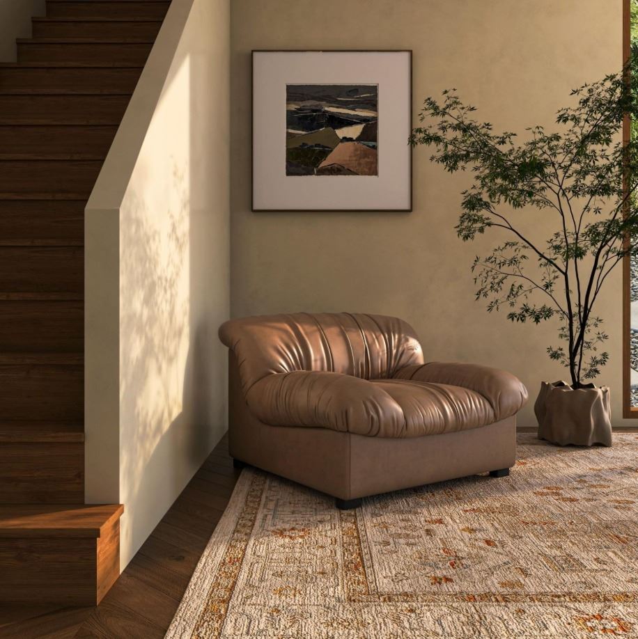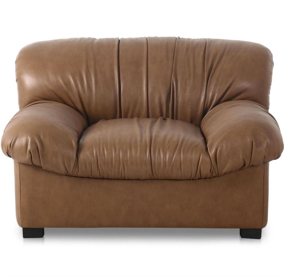 BNIB Moe's - Halston Lounge Chair Tan Leather - 43 x 39 x 27.5 - Retail Price: $3,749.00 - AZ-1004-03