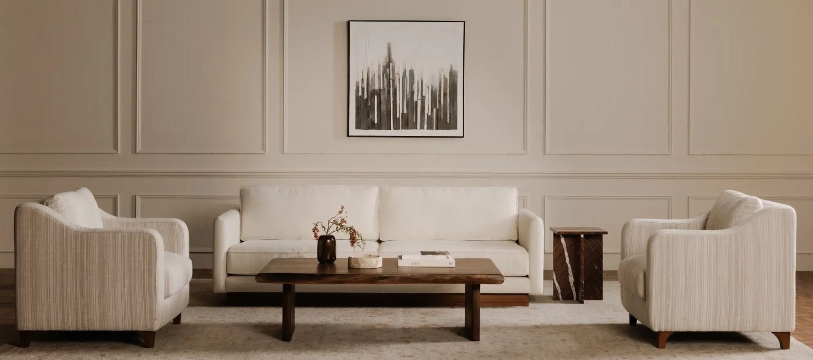 BNIB Moe's - Hewitt Accent Chair Beige Stripe - 32 x 32 x 31.5 - Retail Price: $1,249.00 - OA-1062-3
