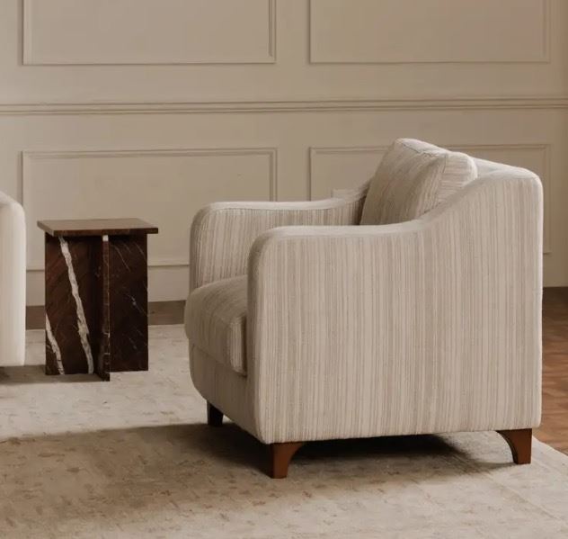 BNIB Moe's - Hewitt Accent Chair Beige Stripe - 32 x 32 x 31.5 - Retail Price: $1,249.00 - OA-1062-34