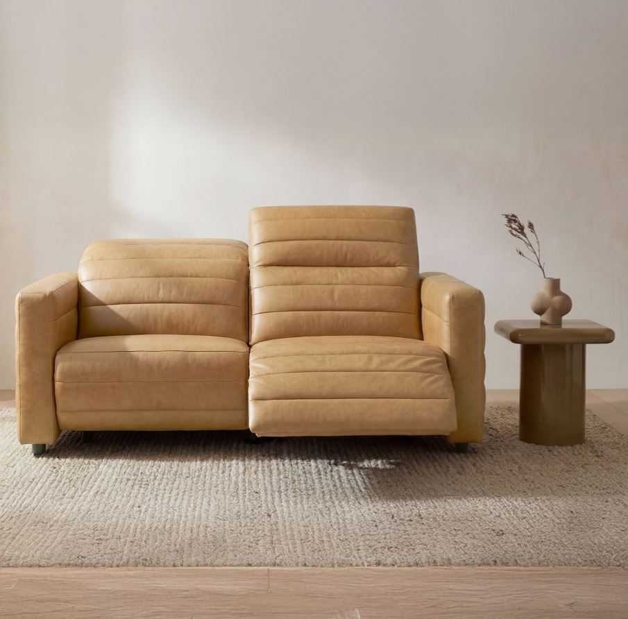 BNIB Moe's - Juno Power Recliner Sofa Tan Leather - 65 x 42 x 31.5 - Retail Price: $7,899.00 - GO-1011-40-0
