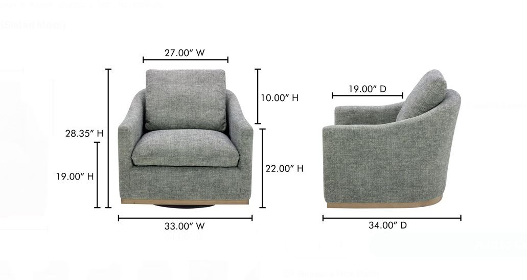 BNIB Moe's - Linden Swivel Chair Slated Moss - 33 x 28 x 27 - Retail Price: $1,549.00 - KQ-1029-37-CAN